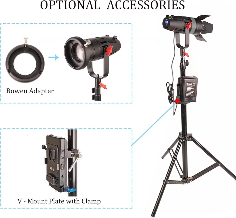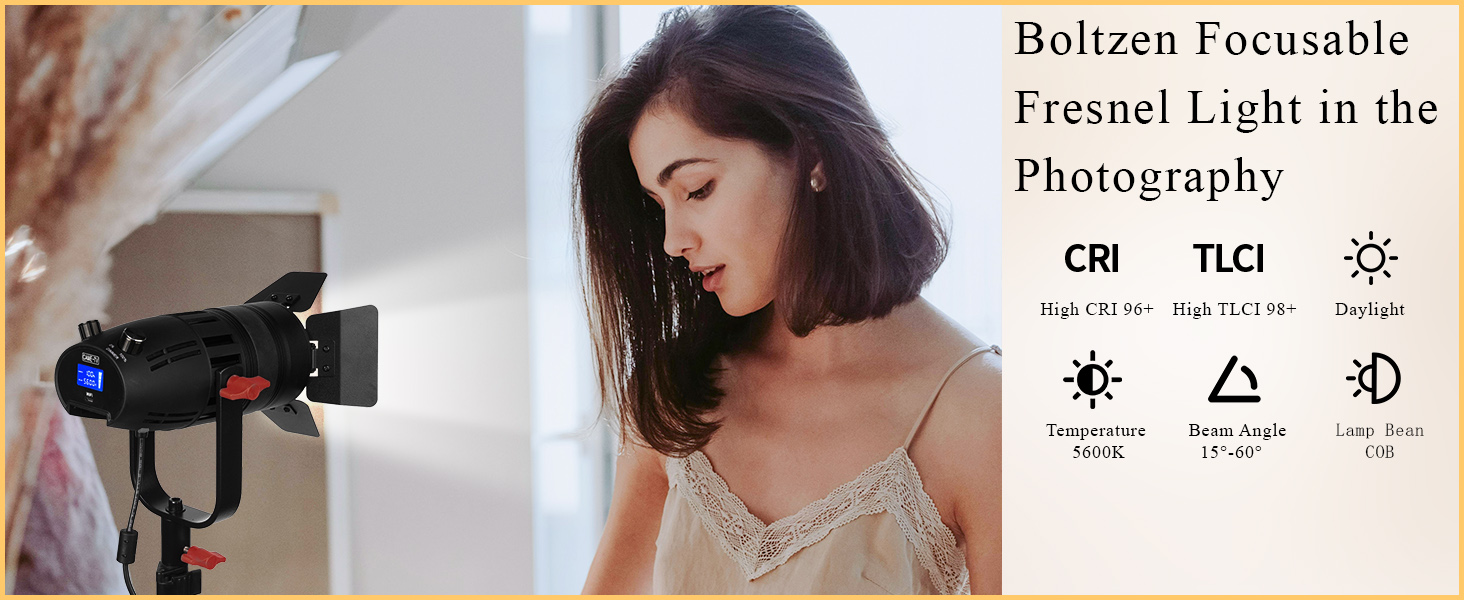 【السطوع وارتفاع CRI/TLCI】مصابيح LED CAME-TV Boltzen B-30 Fresnel Led ضوء النهار متوازن 5600K، CRI96 عالي + TLCI97 قابل للتعتيم 0%-100% سطوع. يمكن لمقبض التعتيم ضبط السطوع بدون خطوات وفقًا لاحتياجات المستخدمين.