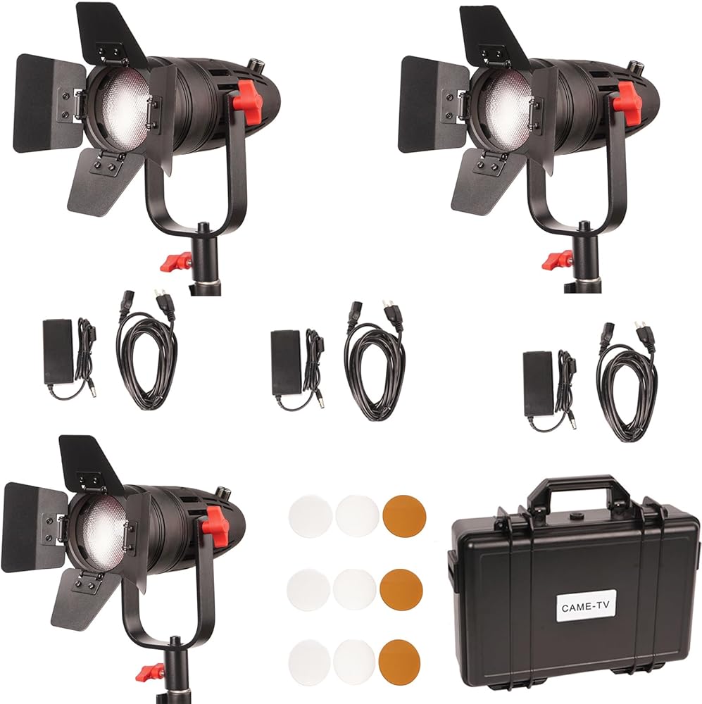 Came-TV 3 Pack Led Video Light Boltzen B-30W COB Fresnel Focusable Video Lights 5600K بدون مروحة LED فيديو ضوء النهار عالي CRI96+ TLCI97+Dimmable 0%-100% باب الحظيرة قابل للإزالة، مجموعة إضاءة Stuido