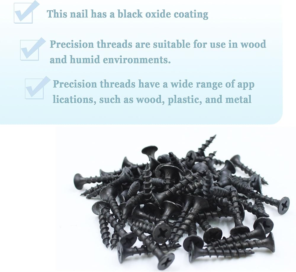 These screws are made of high-quality stainless steel, which is resistant to rust and corrosion. They have a flat head design , making them easy to install and remove. The screws are also coated with a black finish, which provides a stylish and durable appearance. With a length of 1 inch and a diameter of 8 mm, these screws are perfect for a wide range of applications, including furniture, woodworking, and construction. The package includes 200 screws, providing enough for any project.