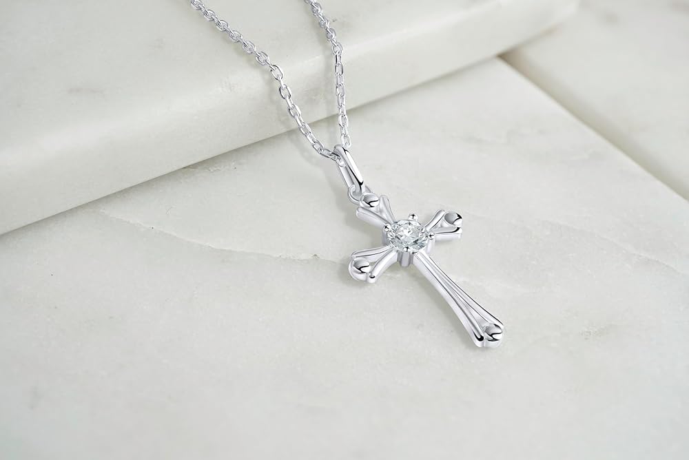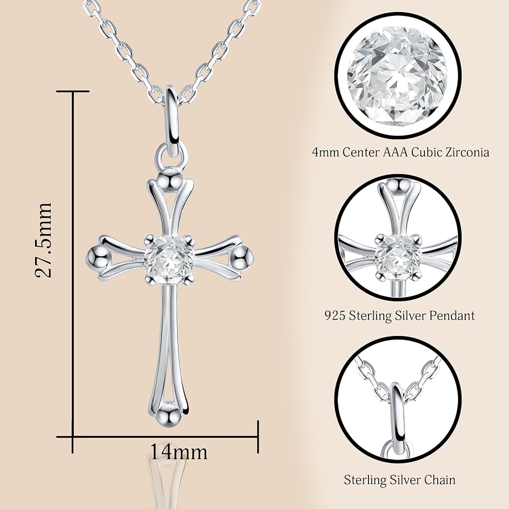 • مواد عالية الجودة: مصنوعة من الفضة الإسترلينية عيار 925، مع قطع ألماس دائري AAA+ CZ في منتصف الصليب، لامعة وأنيقة. لا يسبب الحساسية، ومناسب لأي بشرة، ويجعل فتاتك الجميلة تشعر بالراحة طوال اليوم.
