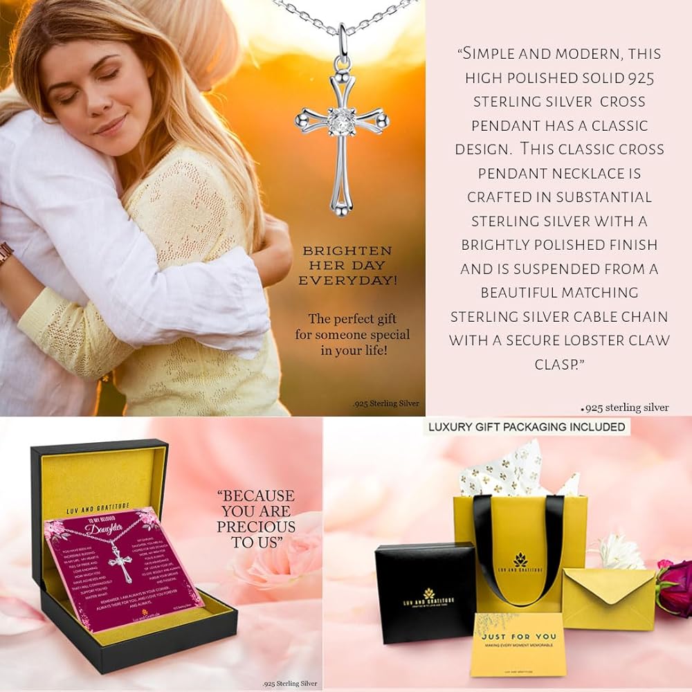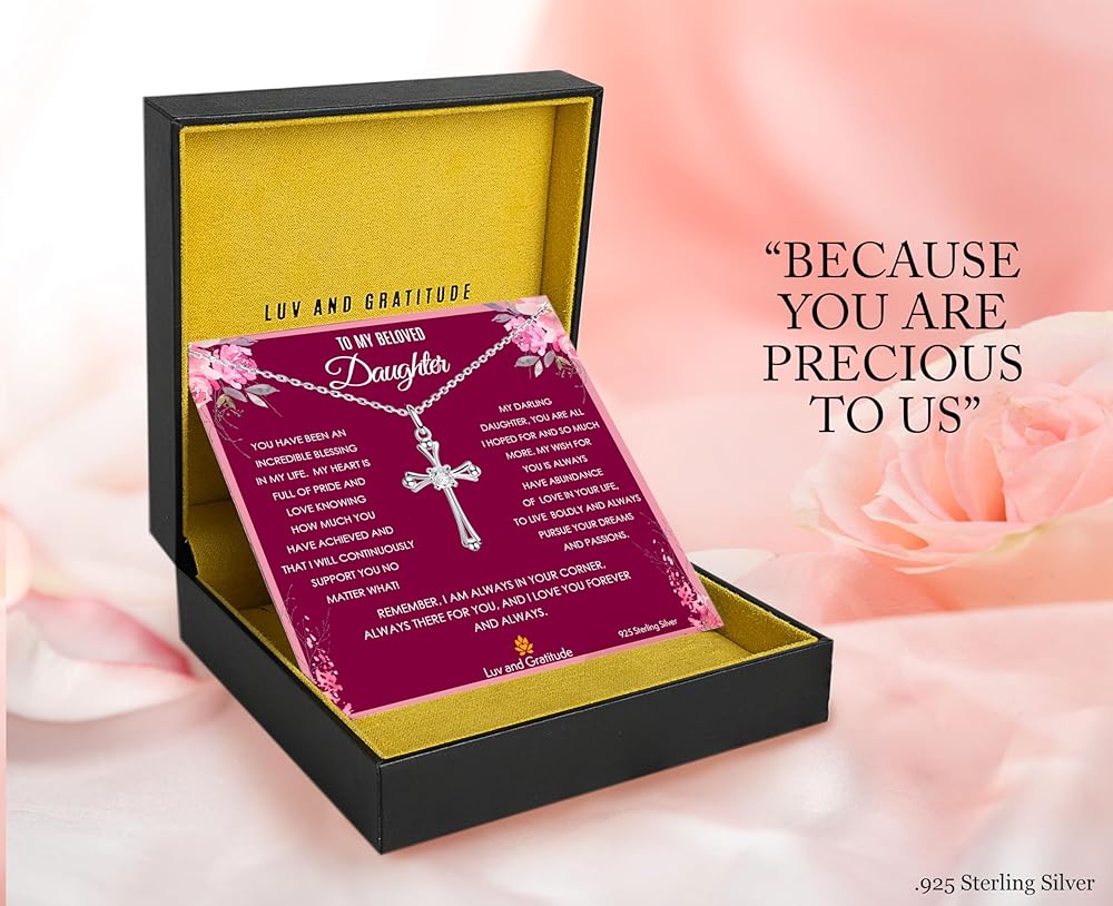 قلادة هدية للابنة من الأم والأب، هدية عيد ميلاد الابنة، هدية عيد الميلاد للابنة، هدية التخرج للابنة، قلادة متقاطعة من الفضة الإسترلينية عيار 925
