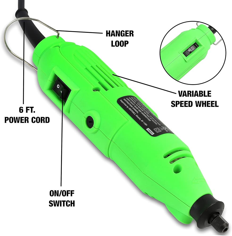 آلة الطحن الخضراء الخالية من الدهون: يوفر المحرك 1.2 أمبير 120 فولت للأداة الدوارة المحمولة سرعة تحميل تبلغ 10,000 - 35,000 دورة في الدقيقة؛ أداة DIY رائعة وأداة دوارة حرفية للمشروعات المنزلية