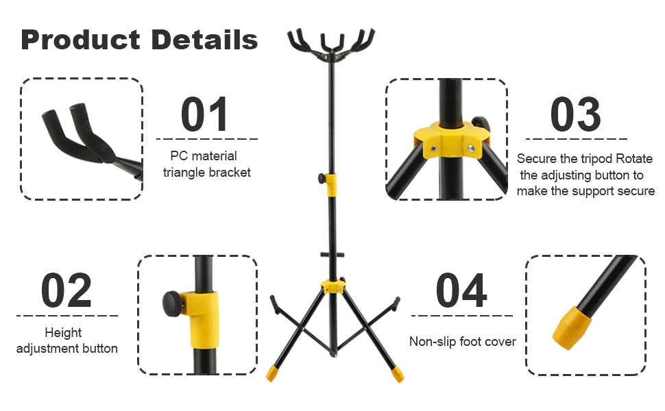 【ارتفاع قابل للتعديل】يمكنك ضبط حامل الجيتار المعلق هذا من 26.8 إلى 39.8 بوصة ليناسب احتياجاتك.