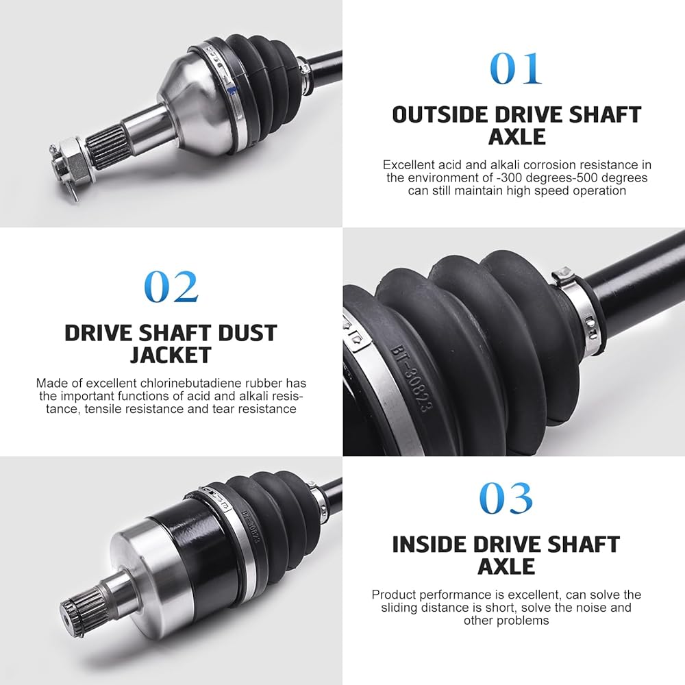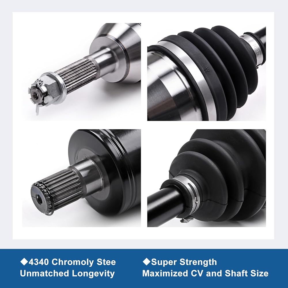 🚘【تصميم فائق】: محور السيرة الذاتية لعمود المحرك الخلفي الأيمن مصنوع من فولاذ كرومولي 4340 عالي التحمل من الطرف إلى الطرف للحصول على قوة فائقة وطول العمر. تتميز وصلات CV بزوايا مفصلية عالية وتأتي معبأة بالشحم الاصطناعي حتى تظل باردة.