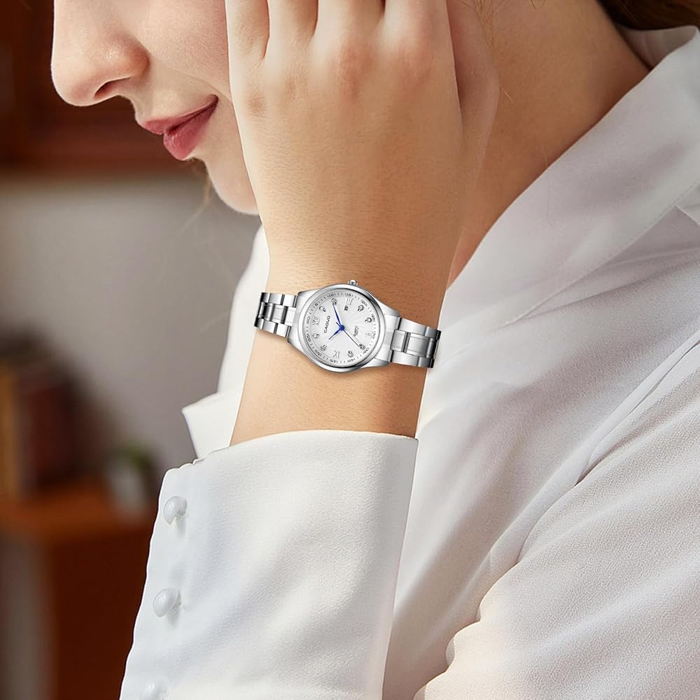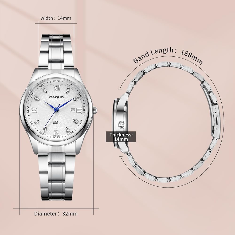 【حفظ دقيق للوقت】ساعة نسائية فضية تستخدم حركة كوارتز أصلية وبطارية لتحقيق ثبات جيد والحفاظ على الوقت الدقيق. مصنوعة من مرآة عالية القوة ومقاومة للاهتراء، لذلك لا داعي للخوف من تآكل الساعة أثناء الاستخدام اليومي. مقاومة للماء حتى 3ATM، والتي يمكنها التعامل بسهولة مع العرق أو هطول الأمطار العرضي أو رذاذ الماء. نصائح ودية: يرجى عدم ارتدائها أثناء الاستحمام أو الساونا أو السباحة.