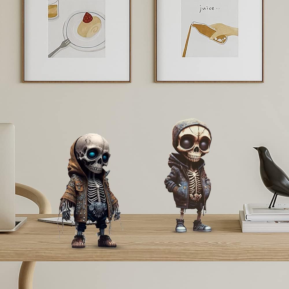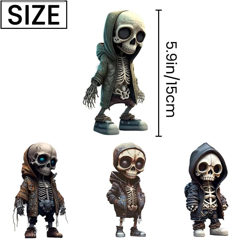 【Unique and Eye-Catching Design】Our cool skeleton figurine are crafted with unique and intricate details that will make them stand out in any setting. These small figurines are perfect for adding a touch of spookiness to your home decor or Halloween party.