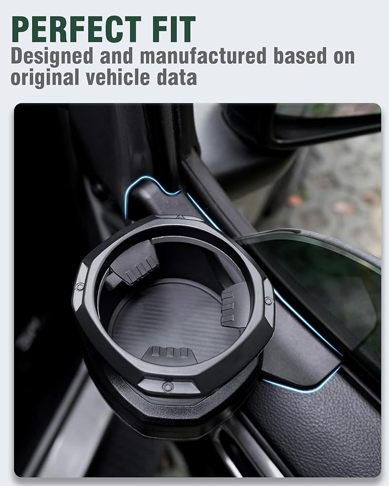 【التصميم】تصميم ممتاز، يتكيف تمامًا مع النمط الداخلي للسيارة، لن يحجب منفذ تكييف الهواء، ولن يؤثر على فتح وإغلاق باب السيارة. متوافق مع أحجام المشروبات المختلفة (حتى حجم 30 أونصة)