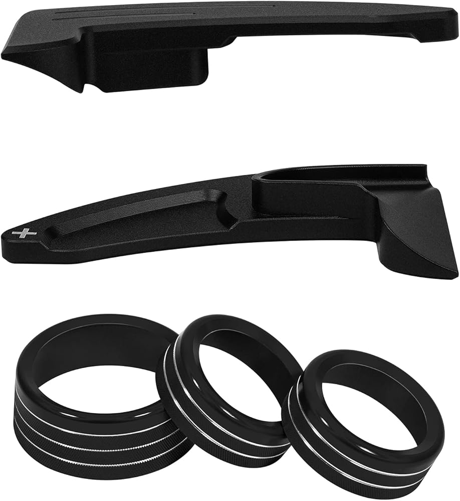 لدودج تشالنجر تشارجر كرايسلر 2015-2021 الملحقات الداخلية الديكور التحول مجداف غطاء الكسوة الموسعة + مكيف الهواء التبديل CD زر مقبض صائق حلقات تقليم (أسود 5PCS)