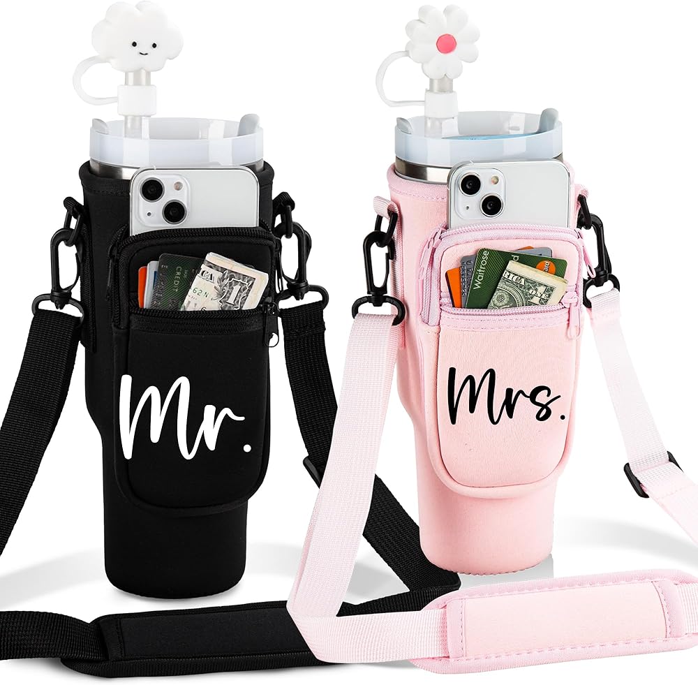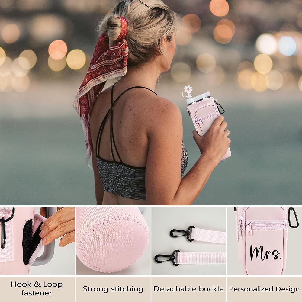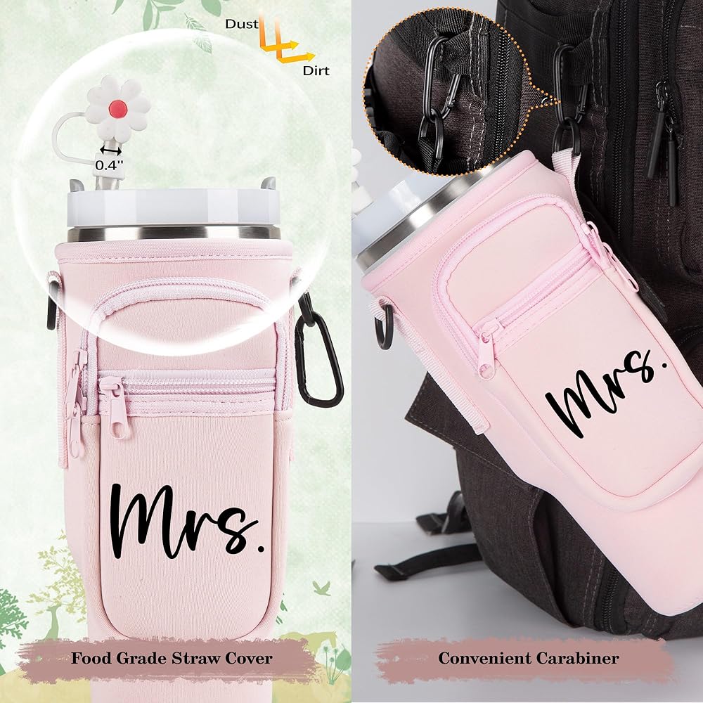 • 🎁Gift Ideas for Couples: This Stanley water bottle bag is a perfect companion for a range of activities including school, work, jogging, hiking, camping, traveling, beach outings, fitness, or sports. It's the ultimate accessory for Stanley Tumbler users. Mrs and Mrs. letters add a touch of style to the bag and gives your Stanley tumbler a unique identity. It's also an excellent gift choice for couples bridesmaid, bridal showers, engagement, newlyweds wife and more.