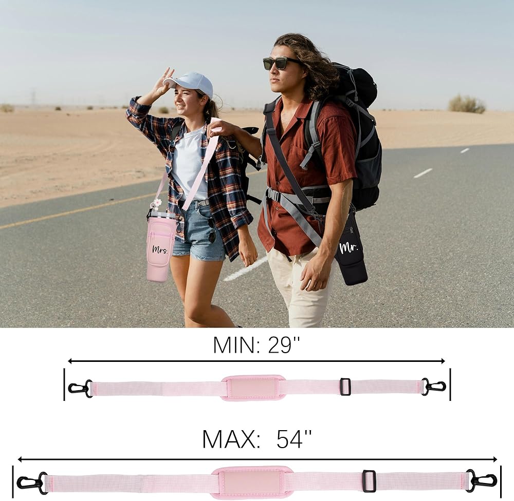 Mostop 2 Pack Water Bottle Carrier Bag for Stanley 40oz Tumbler, Mr and Mrs Neoprene Water Bottle Holder Pouch with Adjustable Straps Straw Covers & Carabiners for Couples Bridal Showers Gifts