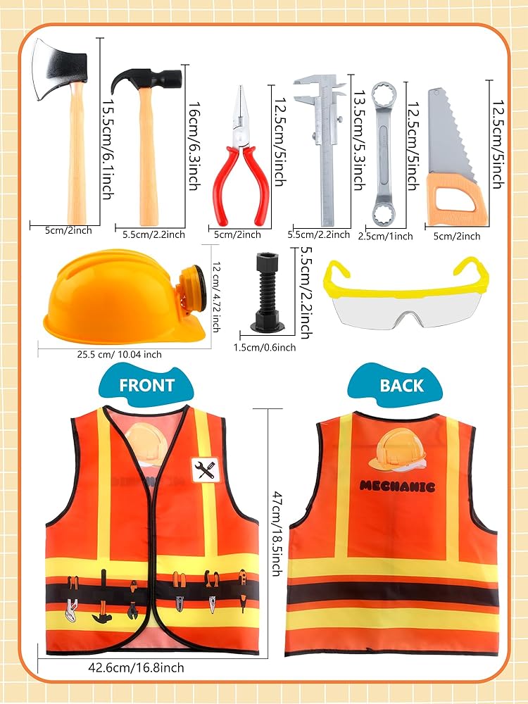 Children's construction worker costume set is a great gift idea for children, which not only encourages children to play actively at parties and activities, but also stimulates their curiosity, exploration and labor spirit to better understand various new thing. Can be used for birthday parties, Christmas costumes, Halloween parties, school cosplay events, dress-up career days, stage performances and more