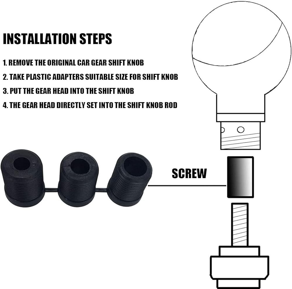 🚓 Package Include: 1 shift lever and 3 thread adapters. Heavy weighted and durable, easy to clean, the sturdy and durable transmission knob improves driving experience and control. If it's a bit loose, you can tie a little tape, then put into the suitable adapter, install the knob into the knob rod.