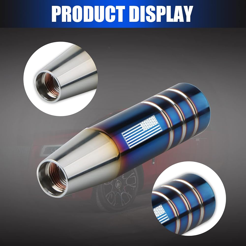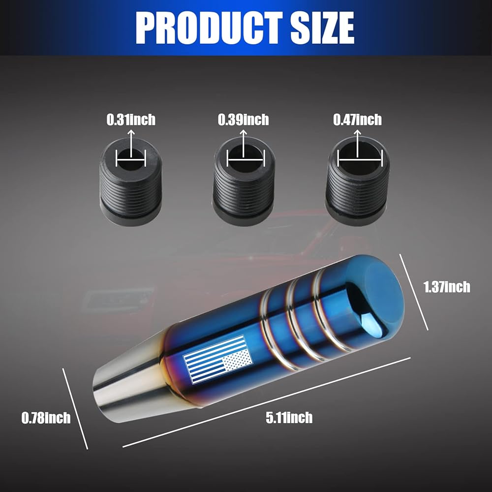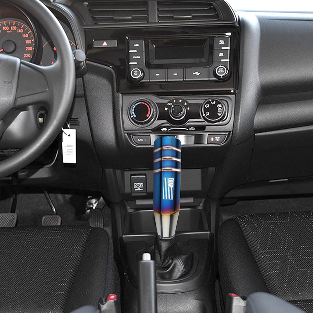 🚓 Simple Style: The shift knob is simple in shape and full of color, and the size is 5.12in/13cm, American Flag logo, shape design like a pen for better grasp. The shifter handle comes with a comfortable smooth surface and metallic feel, comfy to grip and easy to clean.