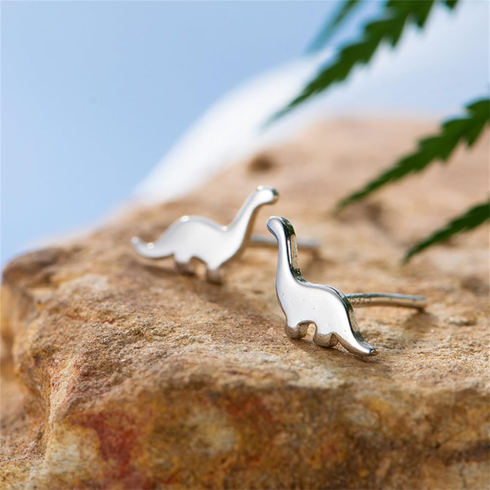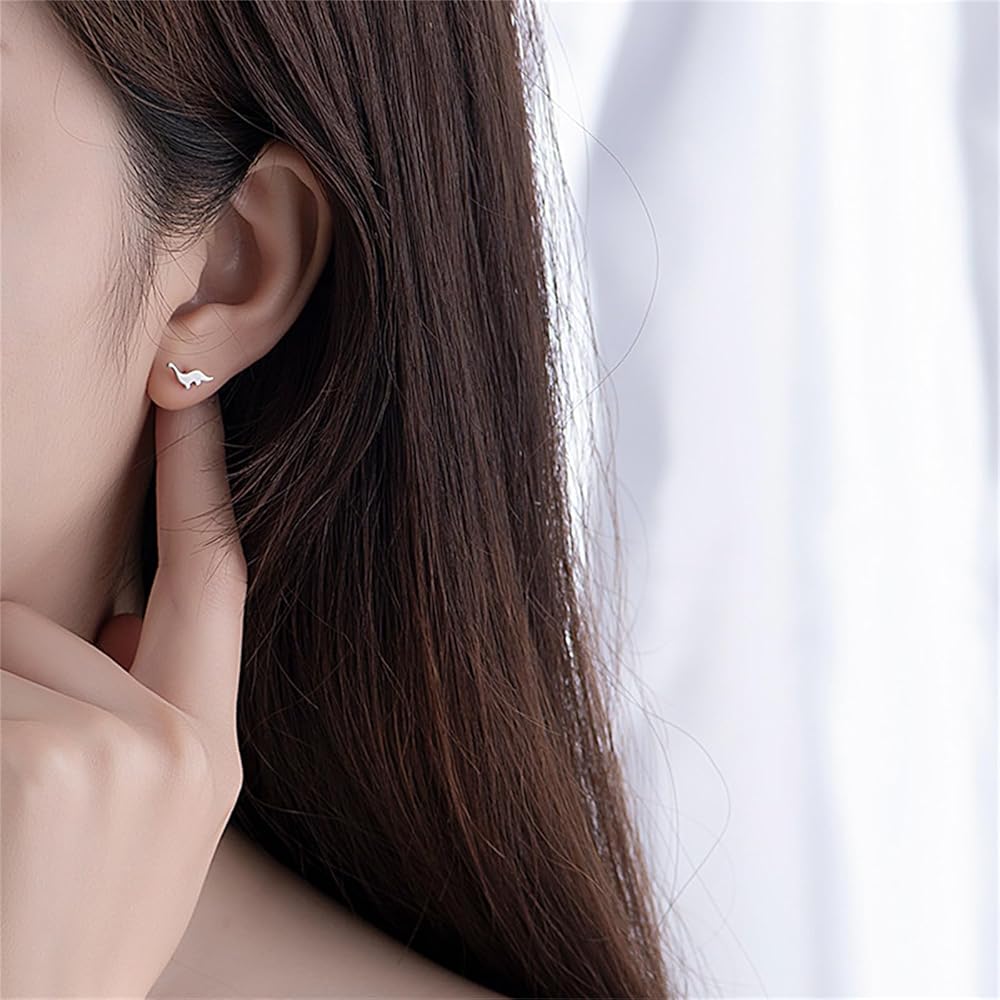أقراط ديناصور صغيرة للنساء في سن المراهقة والأطفال الفتيات مطلية بالذهب والفضة سحر بسيط لطيف صغير برونتوصور التنين الحيوان أقراط صغيرة لحفلات أعياد الميلاد هدايا مجوهرات عصرية يومية