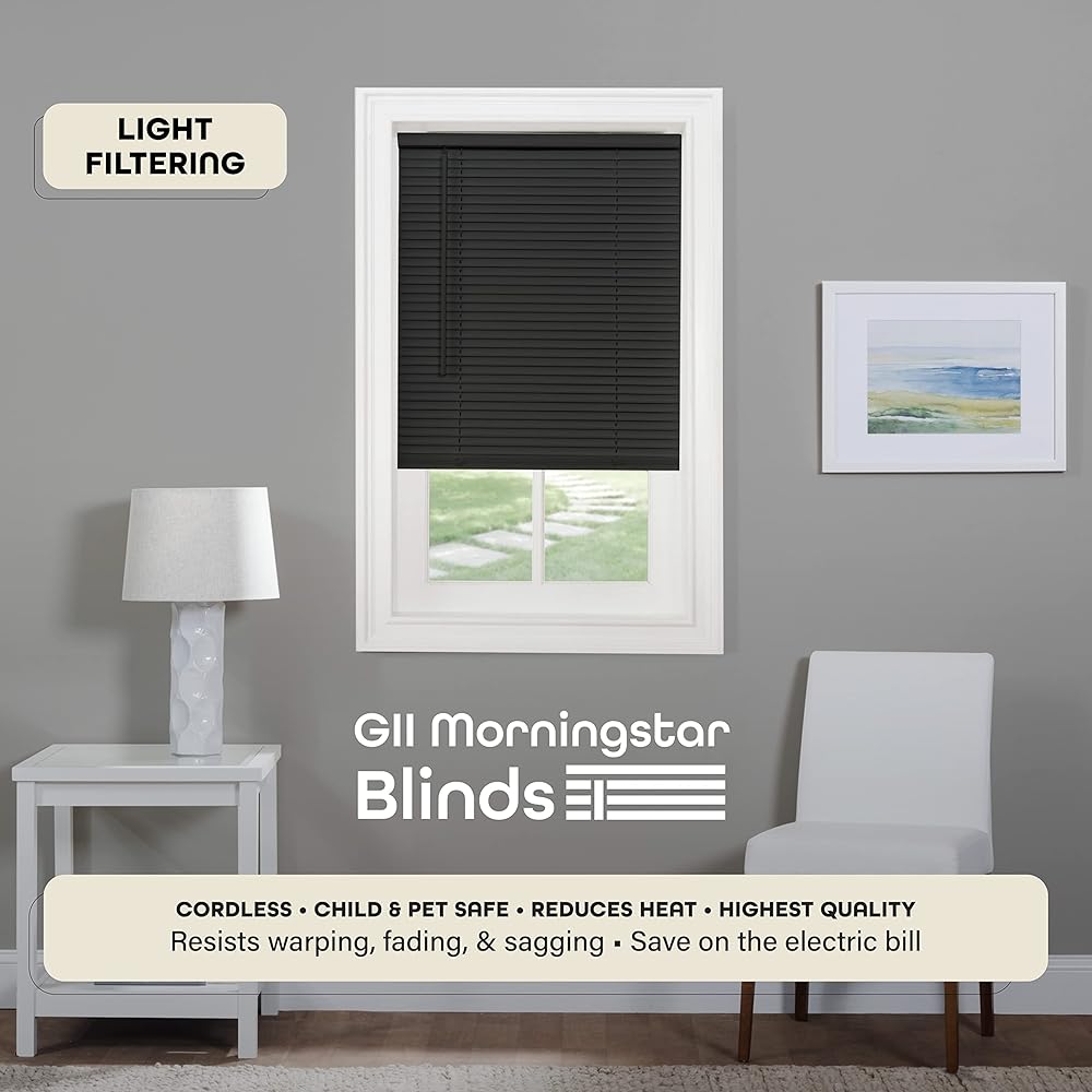 ستارة صغيرة لاسلكية لتصفية الضوء - عرض 58 بوصة، طول 48 بوصة، حجم شريحة 1 بوصة - أسود - ستائر النوافذ الأفقية GII Morningstar اللاسلكية للداخلية من Achim Home Decor