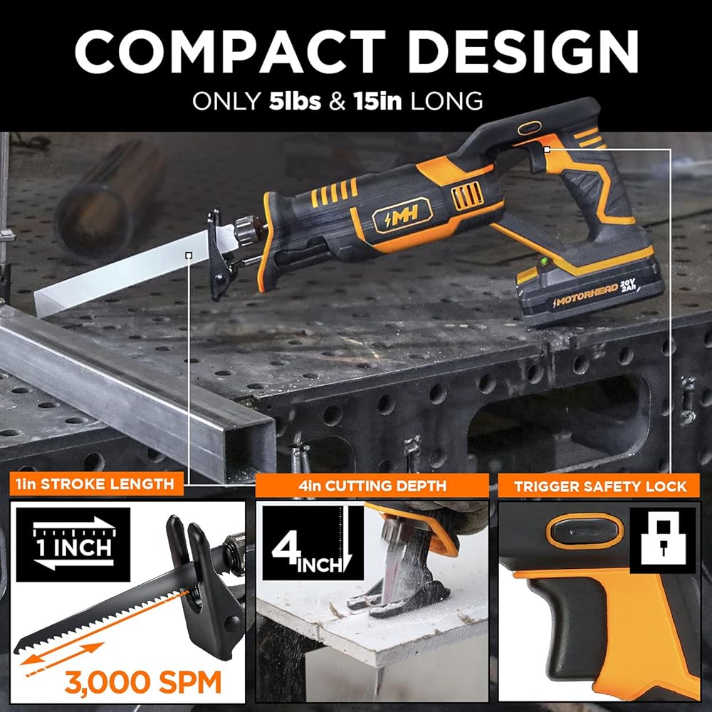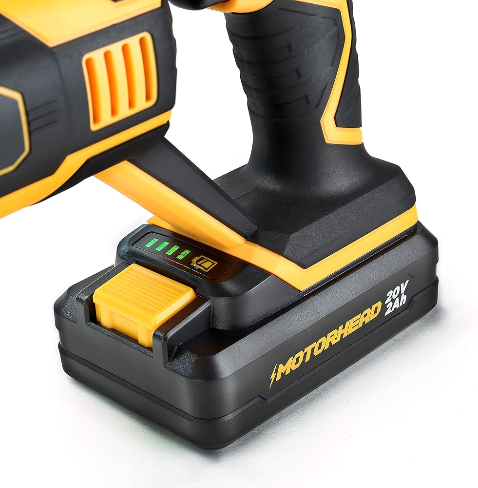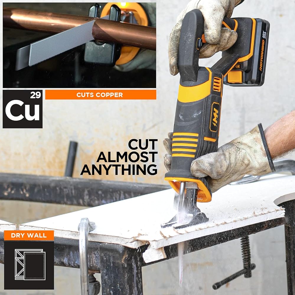 [بطارية 2AH، شاحن سريع لمدة ساعة واحدة وشفرات منشار 2x] - تتضمن بطارية مدمجة ولكنها قوية 2Ah مع مؤشر قياس الوقود المدمج. تعرف دائمًا على مقدار الطاقة المتبقية في بطاريتك. عندما يكون الجو منخفضًا، ضع هذا الولد الشرير في الشاحن السريع RAPIDCHARGE لمدة ساعة واحدة. لا تقلق أبدًا بشأن إتلاف بطاريتك باستخدام أجهزة استشعار درجة الحرارة وعناصر التحكم المدمجة. تتضمن كلاً من الشفرة الخشبية سريعة القطع 6TPI مقاس 6 بوصات والشفرة ثنائية المعدن 14TPI مقاس 6 بوصات لقطع مجموعة واسعة من المواد بمجرد إخراجها من الصندوق.