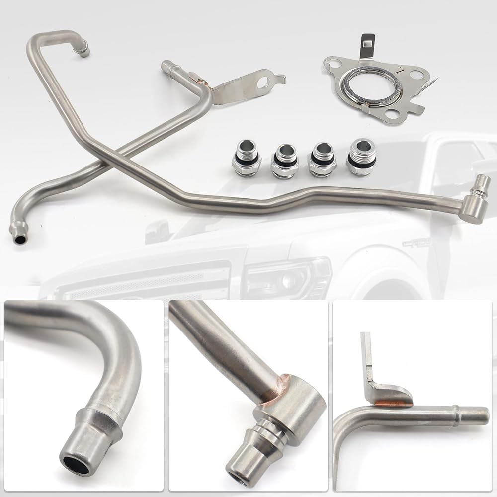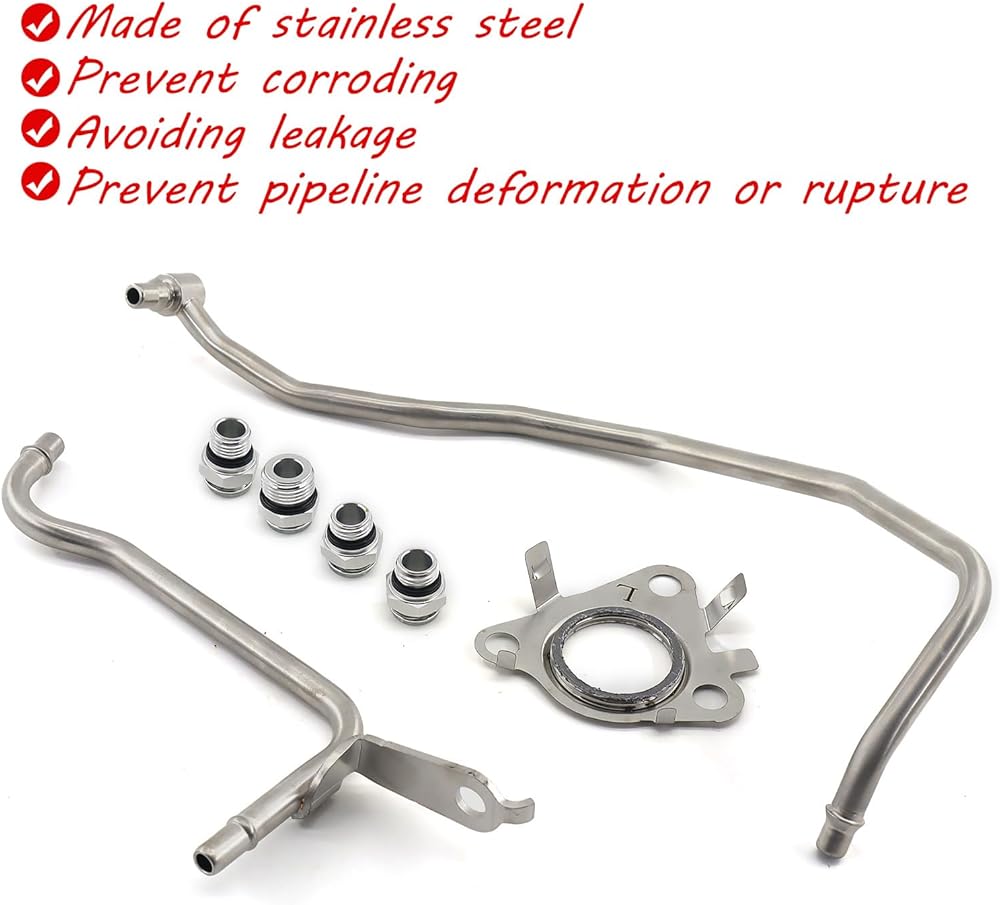 🚗مجموعة كاملة - هذه مجموعة كاملة لخدمة خطوط تبريد الشاحن التوربيني، بما في ذلك خط الإمداد وخط العودة والموصلات وحشية تثبيت التوربو