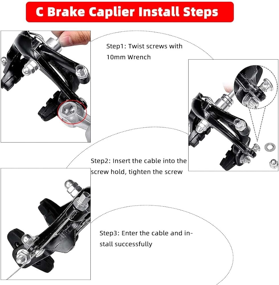 Quality materials: C brake and brake lever are made of quality aluminum alloy material, the brake line is also made of quality aluminum alloy, the outer cover is covered with black leather tube, strong and durable. It is durable and can be used for a long time. It is resistant to cold, heat and oxidation, and is not easily deformed. It ensures that the brakes are sensitive and suitable for most weather conditions