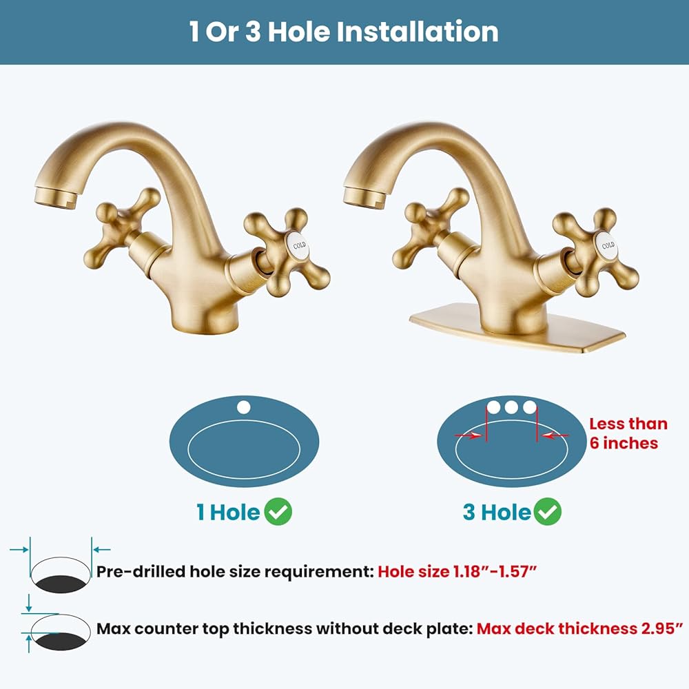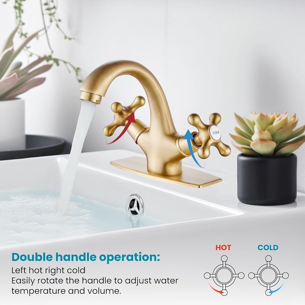 وظيفة صنبور حوض الحمام بمقبض متقاطع مزدوج: مع مقبضين متقاطعين للتحكم الدقيق في درجة حرارة الماء وصرف منبثق مع غطاء فائض، يضمن هذا الصنبور تدفق مياه موثوق وفعال.
