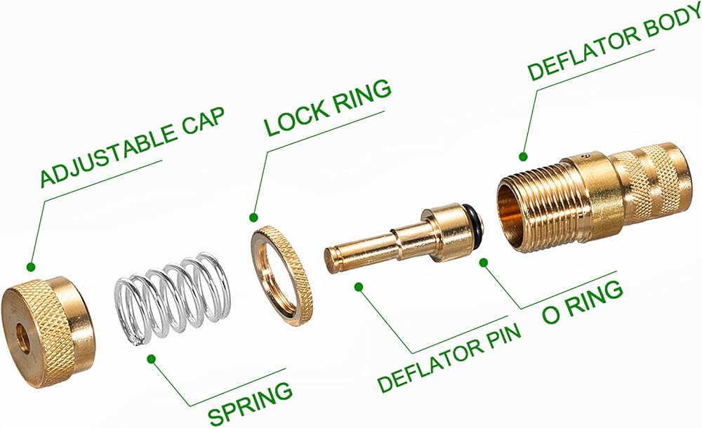 Step 2: With the lock ring and adjusting cap wound down, install the deflators onto the stem. (Make sure the threads are clean and in good condition)
