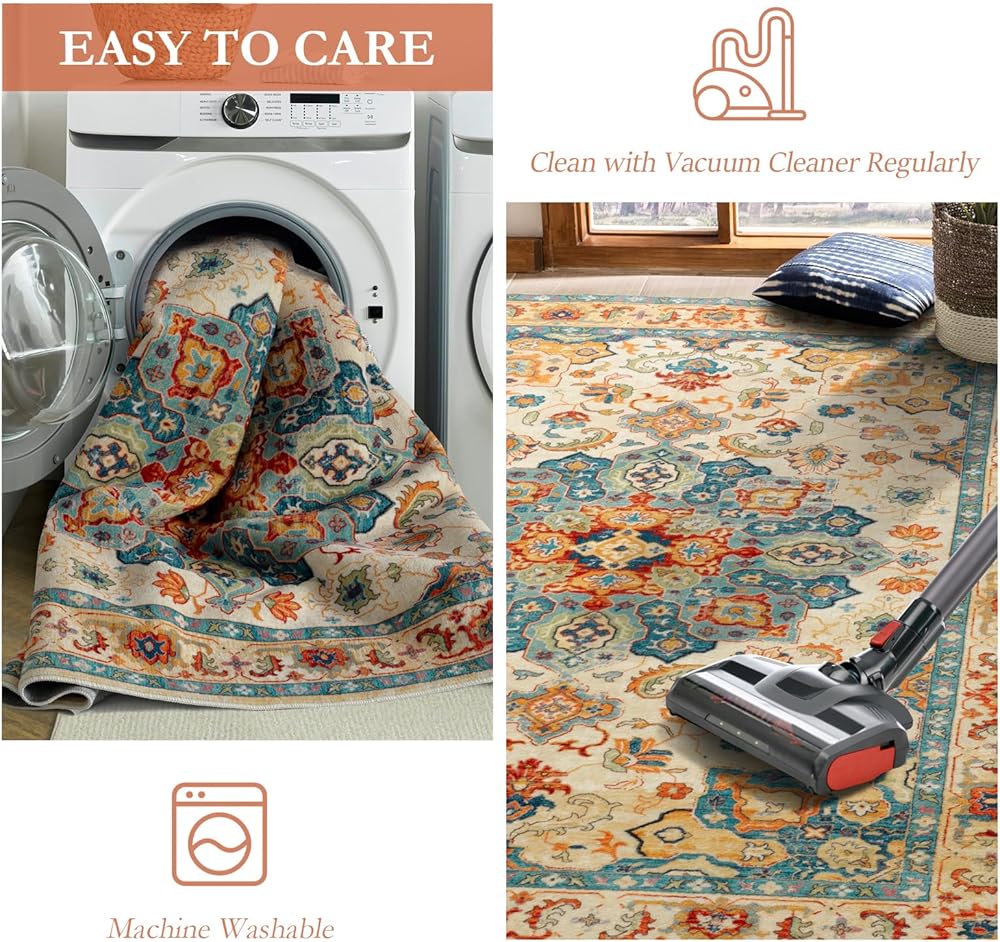 【تستخدم على نطاق واسع】هذه السجادة القابلة للغسل مقاس 12.7 سم × 17.78 سم مناسبة لغرفة المعيشة والسرير وغرفة الطعام وغرفة الحضانة وغرفة الغسيل وغيرها من المناطق ذات حركة المرور العالية. كما أنه ديكور جيد للمساحات مثل الدراسات ومناطق المدفأة والغرف العائلية وغرف الضيوف والمكاتب المنزلية. قد يكون هناك اختلاف بسيط في اللون بسبب اختلاف الإضاءة أو شاشات العرض.