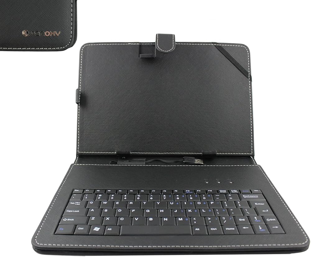 SANOXY 9 inch Universal Tablet PC Leather Case with Keyboard/Holder/Capacitance Stylus for 9" Tablet PC (Micro USB keyboard, Black)