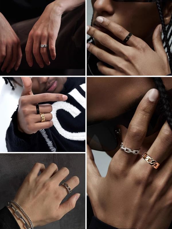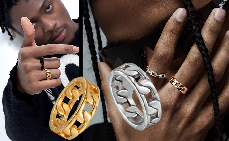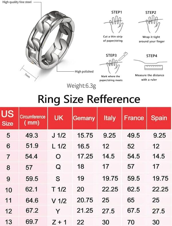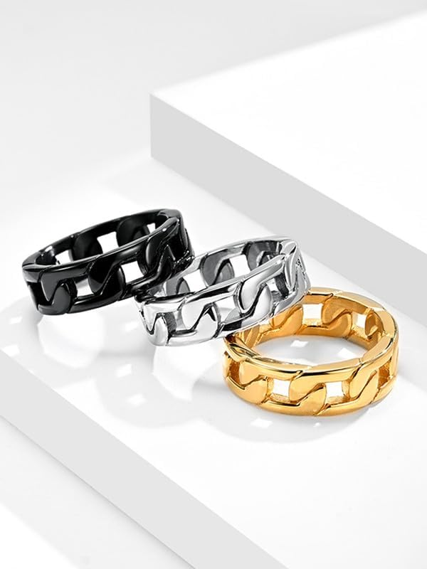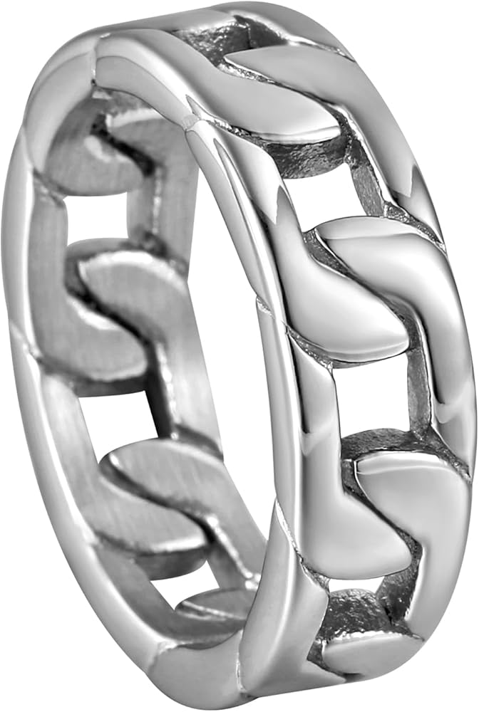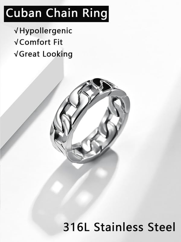 حلقة ربط كوبية من الفولاذ المقاوم للصدأ: تصميم سلسلة كوبية كلاسيكية، يمكن ارتداؤها كخاتم زفاف أو حلقة إبهام أو أي إصبع. متينة ومريحة. خاتم ذو مظهر جيد. ما تراه هو ما تحصل عليه!