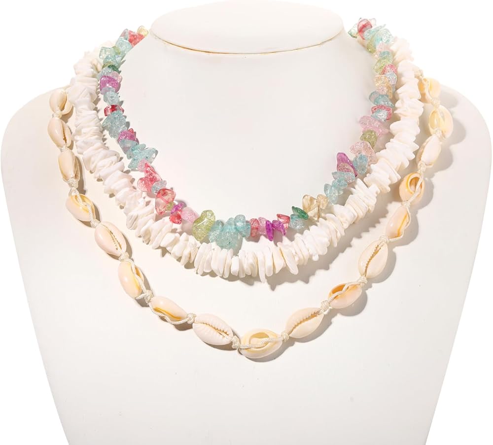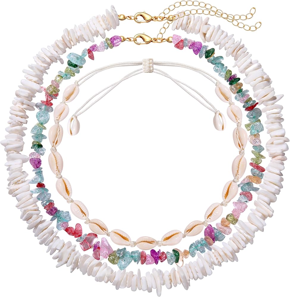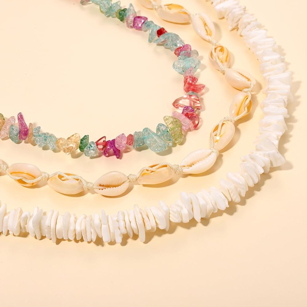 • 🌊Summer Jewelry Set: Meet our Secret Beach Shell Necklace. It's like a little piece of a hidden tropical paradise around your neck. With a real shell pendant, this necklace takes you on an escape to a sunny, secret beach. Includes 1PCS shell choker necklace, 1PCS puka shell necklace and 1PCS natural stone necklace. You can wear them interchangeably or at the same time without worrying about insufficiency, depending on your needs or preferences, or share them with others.