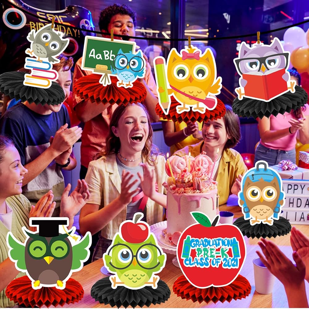 رياض الأطفال غراد 2023 قطع مركزية على شكل قرص العسل، التخرج السعيد، رياض الأطفال، موضوع التخرج لمرحلة ما قبل المدرسة للأطفال، تهاني المدرسة، غراد 2023، ديكورات الحفلات 2023، لوازم حفلات التخرج 2023
