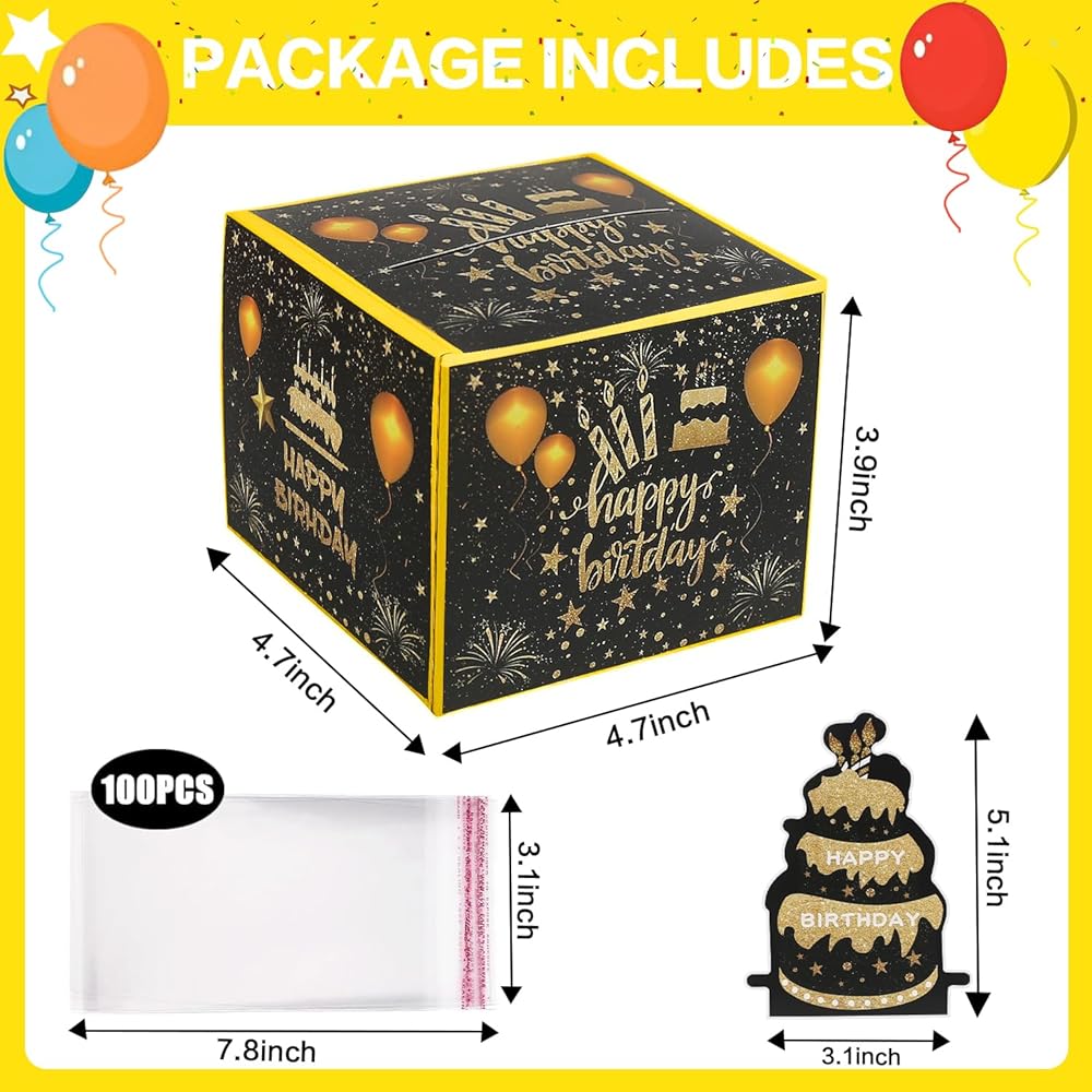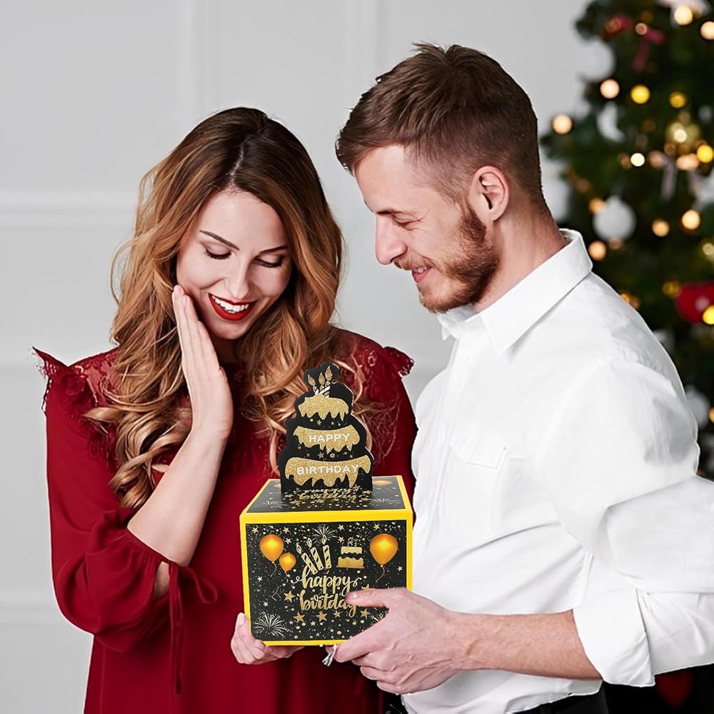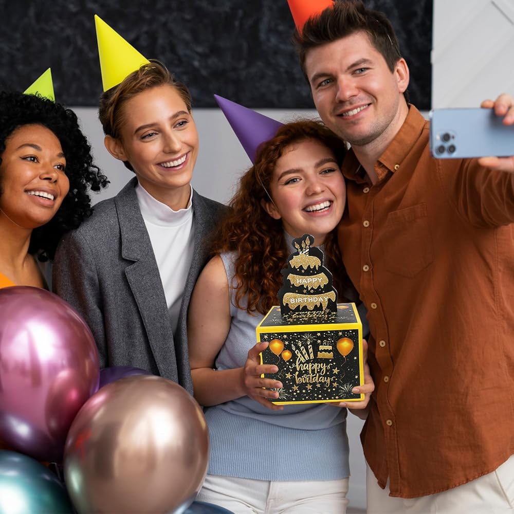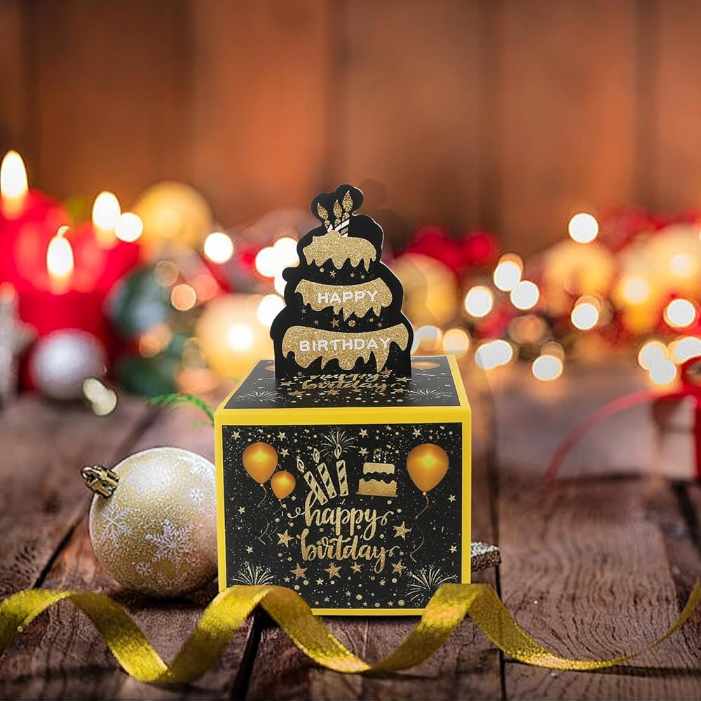 【Safe Material and Proper Sizes】- Money Box measures 4.3" x 5.3" x 5.3" and is made of sturdy cardboard with a happy birthday-themed pattern. There is adhesive tape on the inside of the birthday cake card to fix the money roll. Not only is this a surprise gift, but it's also an elegant way to offer cash.