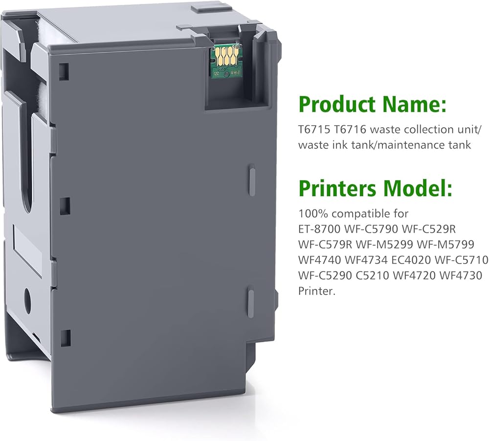 - نموذج الطابعة: T6715 T6716 صندوق الصيانة لطابعات WorkForce Pro WF-C5790 WF-M5799 WF-C529R WF-C579R WF-M5299 ET-8700 WF-C5710 WF-C5790 WF-C5290 WF-C5210.
