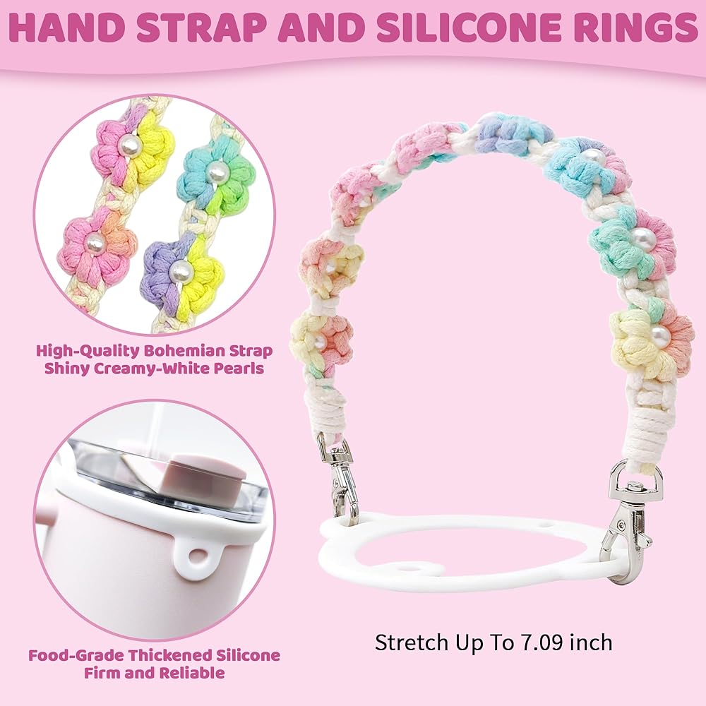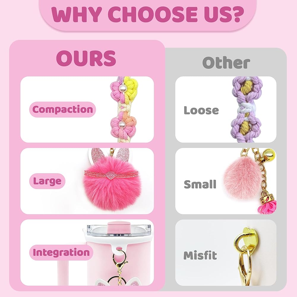 **تصميم مبتكر** - يتميز حزام كأس ستانلي المنسوج البوهيمي الخاص بنا بحلقة أمان متقدمة من السيليكون مع فتحات مدمجة لتعليق حليات ستانلي، ليست هناك حاجة لحلقات معدنية إضافية. بالإضافة إلى التصميمات المبهجة التي تحمل طابع القطط، فإنها تضيف الأناقة والأمان. تشتمل المجموعة على حلية قطيفة أكبر وأكثر نعومة على شكل قطة لإضفاء لمسة فاخرة