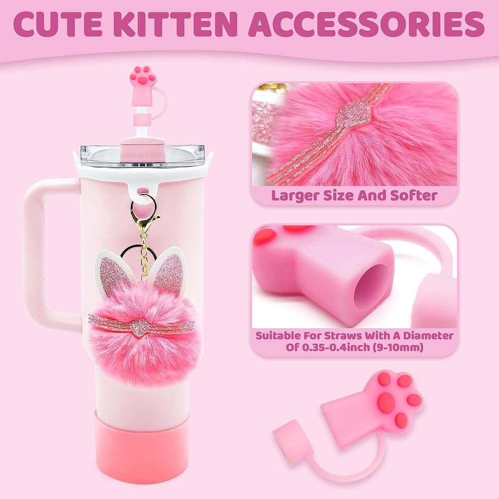 **مجموعة إكسسوارات كأس ستانلي الساحرة على شكل قطة** - أضف سحرًا وعمليًا إلى كأس ستانلي الخاص بك مع مجموعة الملحقات التي تحمل طابع القطط، وهي فكرة هدية مثالية
