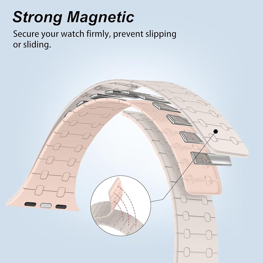 ✅تصميم مغناطيسي قوي: سوار ساعة مغناطيسي من السيليكون يعتمد مغناطيس قوي مع تصميم إغلاق مغناطيسي، مما يضمن ملاءمة آمنة ومستقرة على معصمك دون القلق بشأن الانزلاق. يوفر تجربة ارتداء آمنة وموثوقة.