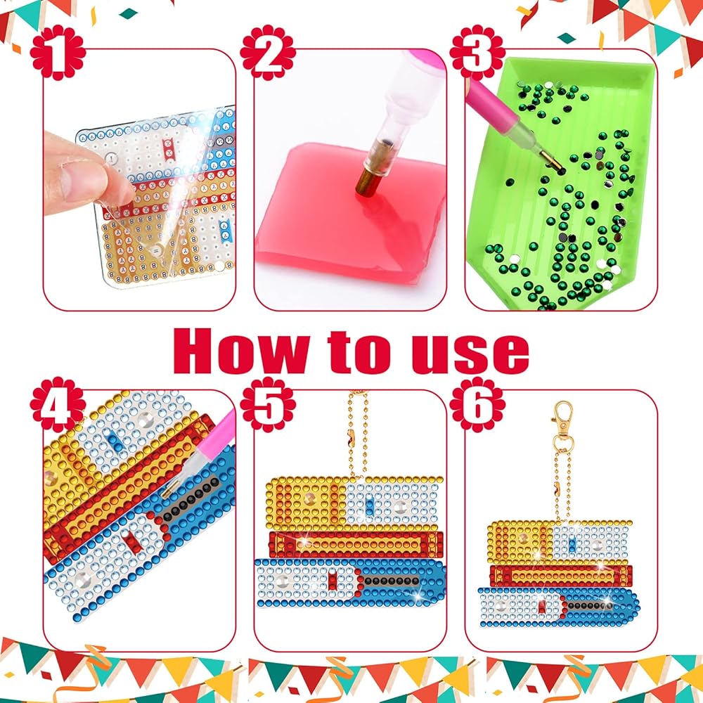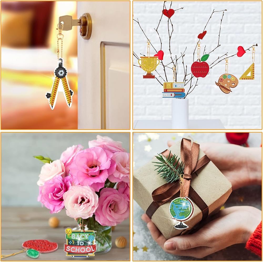 These diamond painting key rings are easy to use, you only need to stick these diamonds in their corresponding places, then you will get some beautiful keychains.
