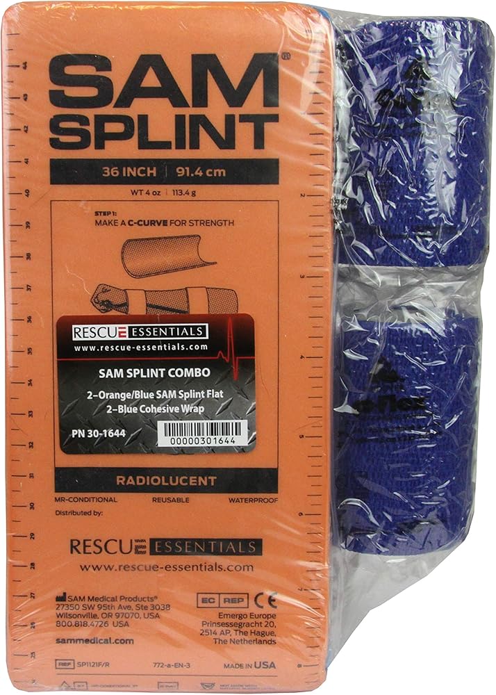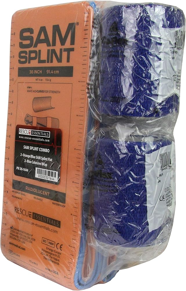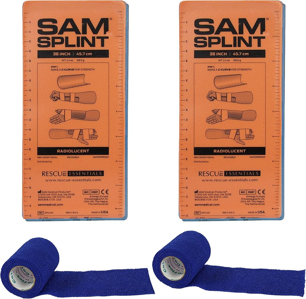 مجموعة SAM® SPLINT COMBO (2 جبيرة برتقالية/زرقاء مقاس 36 بوصة و2 غلاف متماسك أزرق اللون)