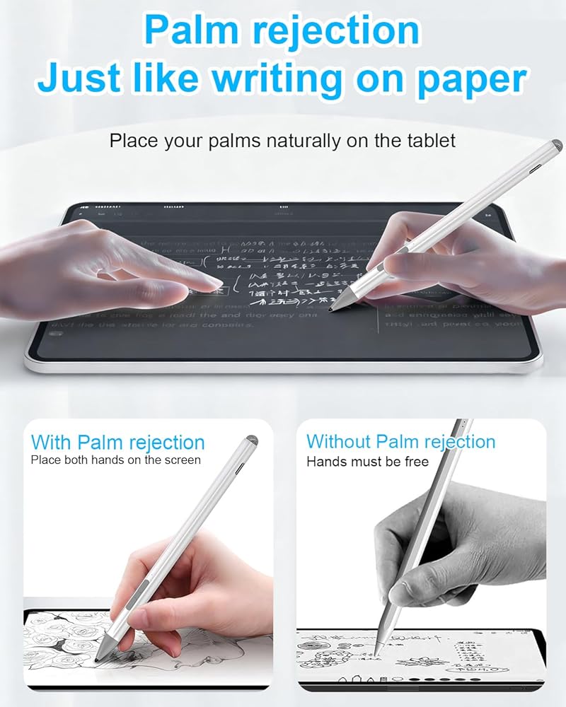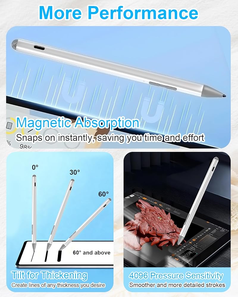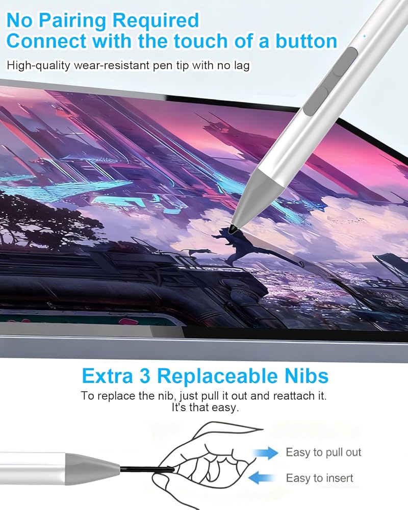 قلم Surface Pro Pen Stylus - قلم Surface Pro 12/11/10/X/9/8/7/6/5/Go 3/Go 2/Book/Laptop 5/Studio 2 مع 4 سن، 4096 حساسية للضغط ورفض راحة اليد وقابل لإعادة الشحن