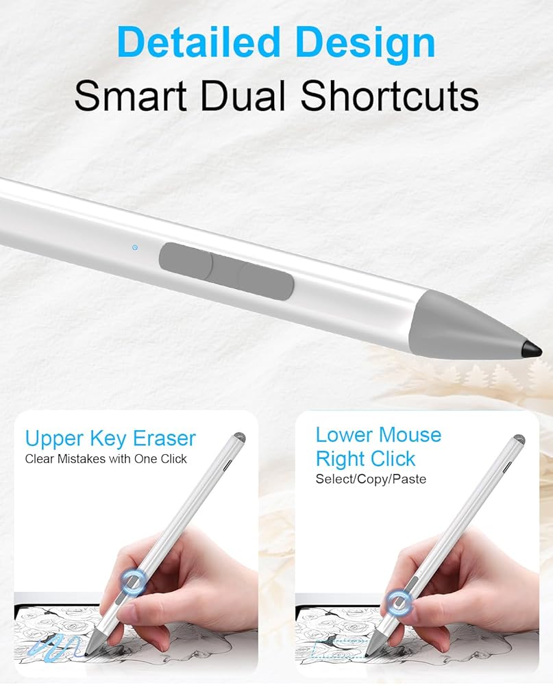• 🖊متوافق على نطاق واسع: قلم Surface متوافق مع Surface Pro 5/6/7/8/9/X، وSurface Book/Surface Laptop/Surface Studio/Surface Duo وبعض سلاسل ASUS/HP/Sony/Dell، مما يوفر للمستخدمين توافقًا واسعًا . بالإضافة إلى ذلك، تم تجهيز جسم قلم مايكروسوفت أيضًا بمؤشر ضوئي LED. عندما يتحول ضوء المؤشر إلى اللون الأحمر، فهذا يشير إلى أن طاقة البطارية منخفضة/جارية الشحن. عندما يكون ضوء المؤشر أزرق، فهذا يعني أنه مشحون بالكامل/قيد الاستخدام، مما يسمح لك بمعرفة حالة البطارية في الوقت المناسب.