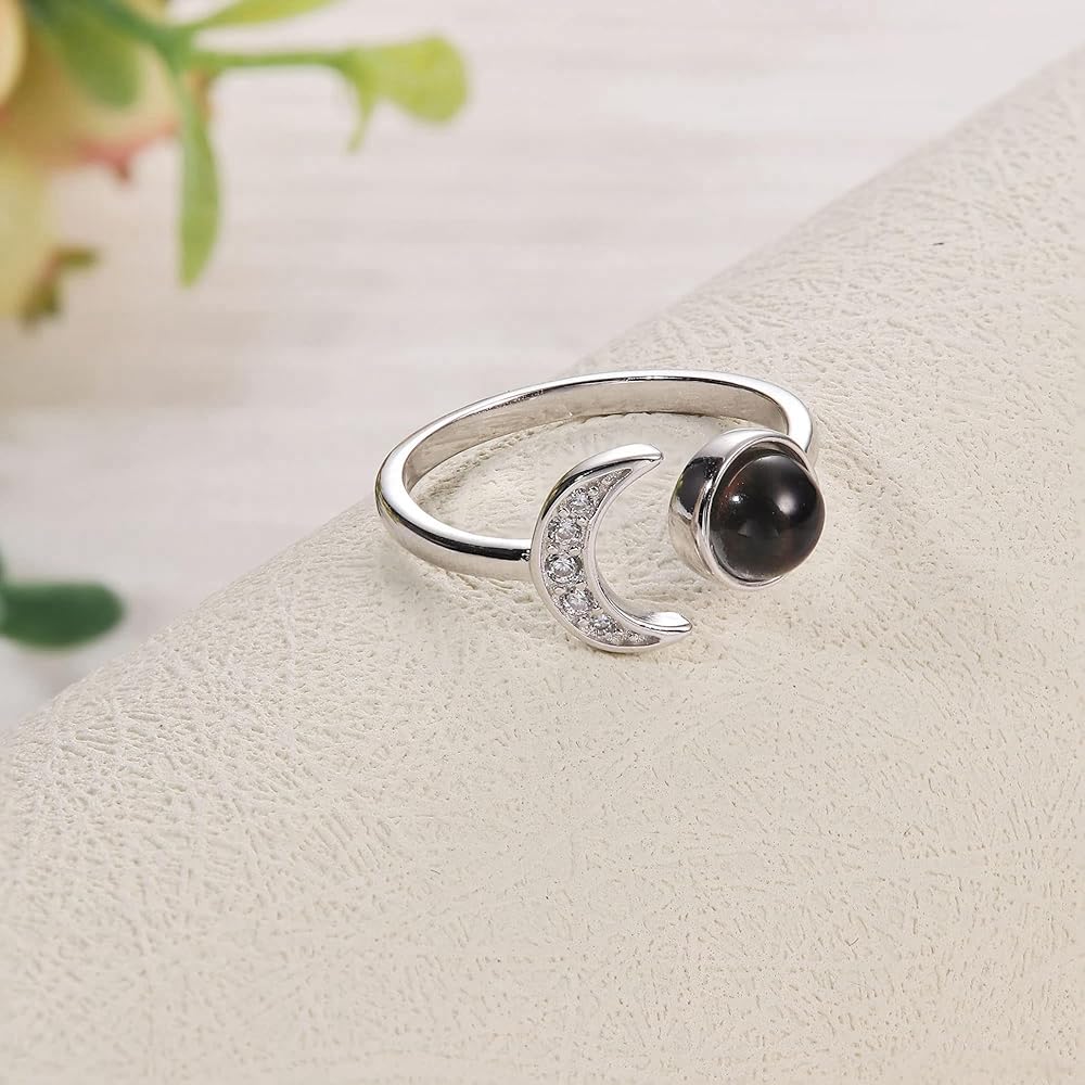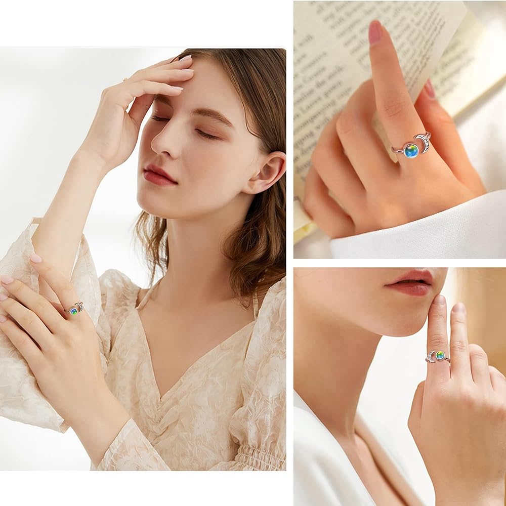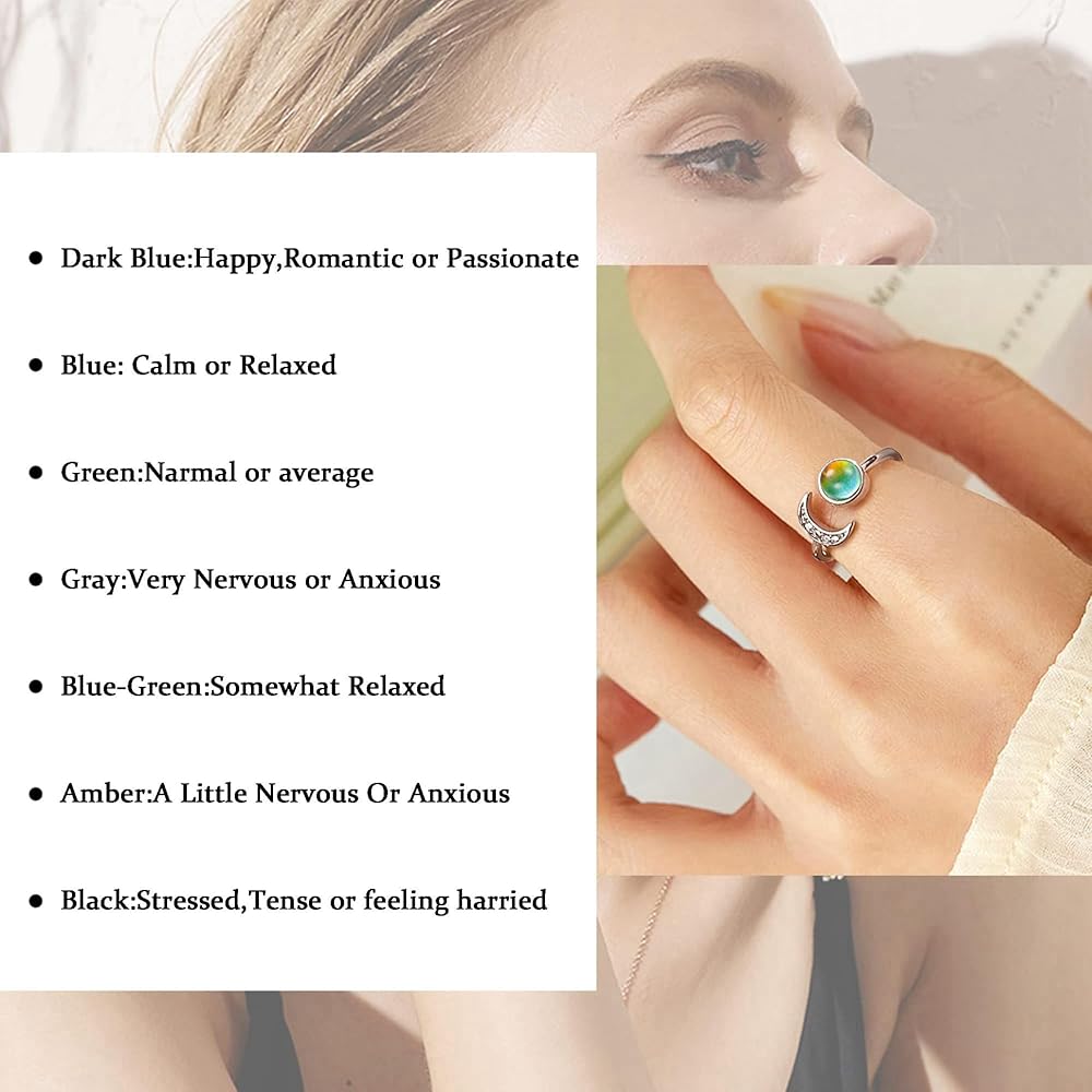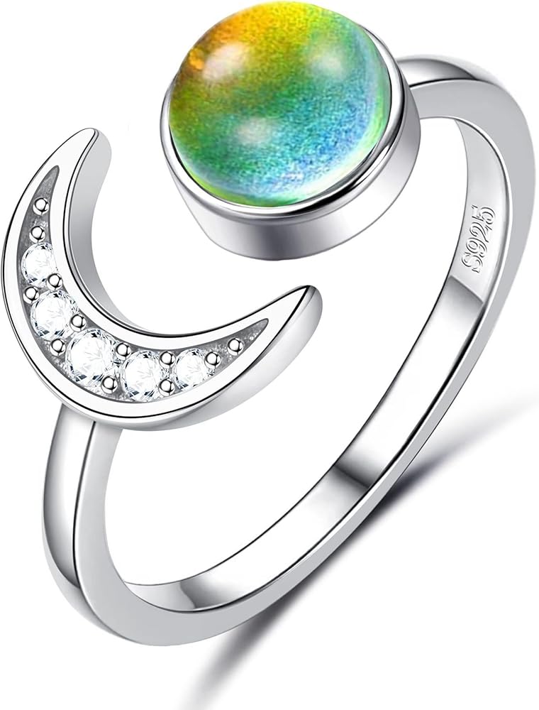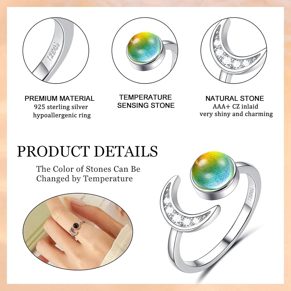 [Design]:925 Sterling Silver Ring, Mood Ring, Silver Ring, Ring for Women, Adjustable Ring, Moon Star Cubic Zirconia Rings, Statement Ring
