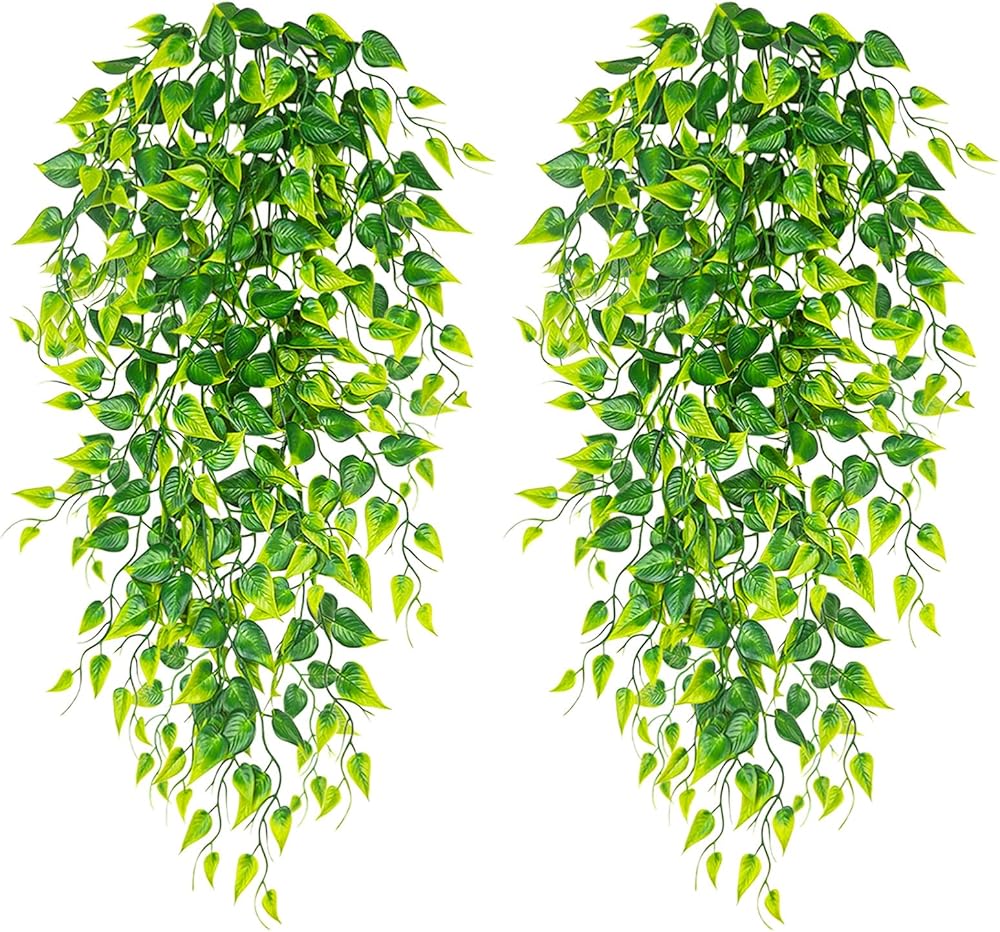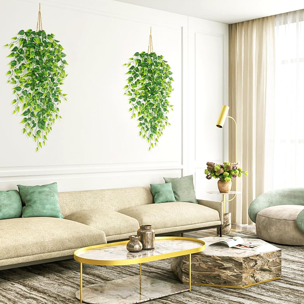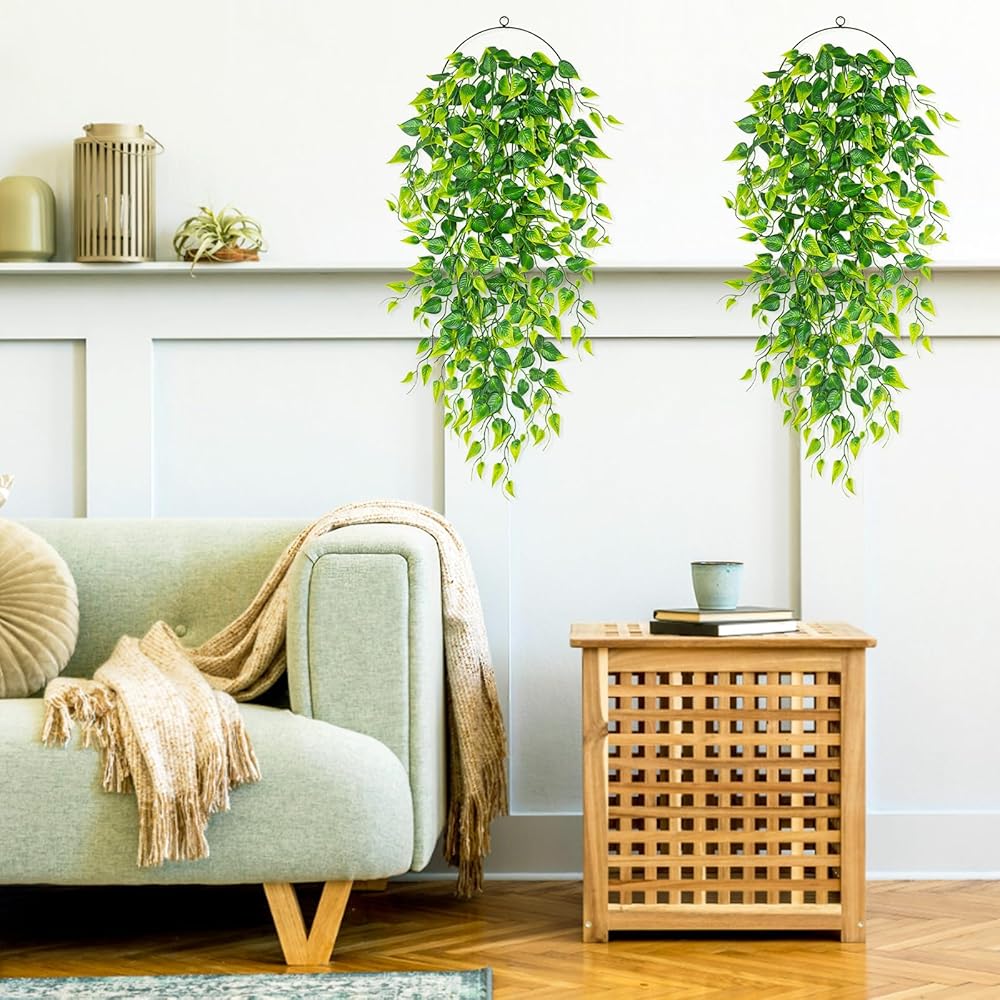 Fake Hanging Plants, QUOZUO 2pcs faux Hanging plants, Artificial Plants Ferns Ivy Vine for Wall House Indoor Outdoor Room Home decor