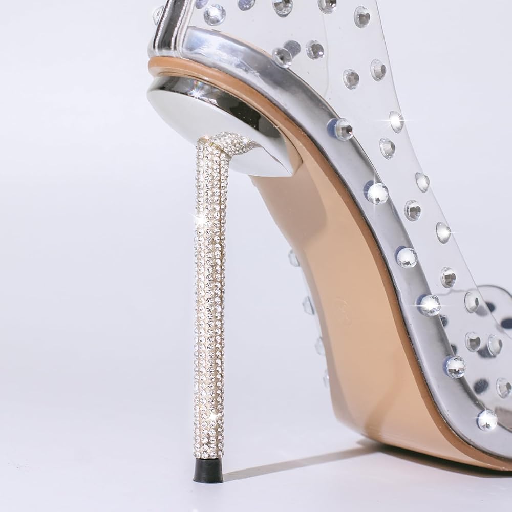 هذه الأحذية ذات الكعب العالي المتلألئة مع حجر الراين على الكعب تلمع بألوان مختلفة مما يجعلك متألقة