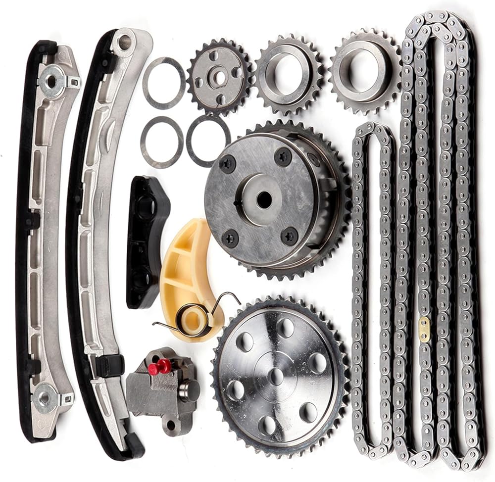 Package Contents-1X Timing Chain-(138 Links),1X Oil Pump Chain-(60 Links),1X Cam Gear,1X Crank Gear,2X Oil Pump Gear,1X Tensioner,1X Timing Chain Guide-(Left),1X Timing Chain Guide-(Right),1X Tensioner Guide Rail-(Oil Pump),1X Oil Chain Guide-(Oil Pump),3X Oil Seals,1X VVT Gear.