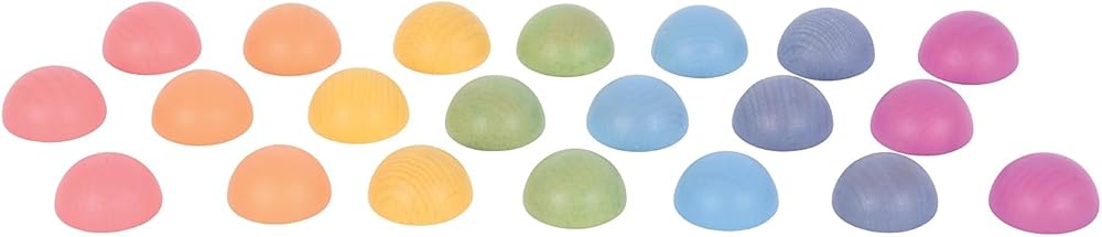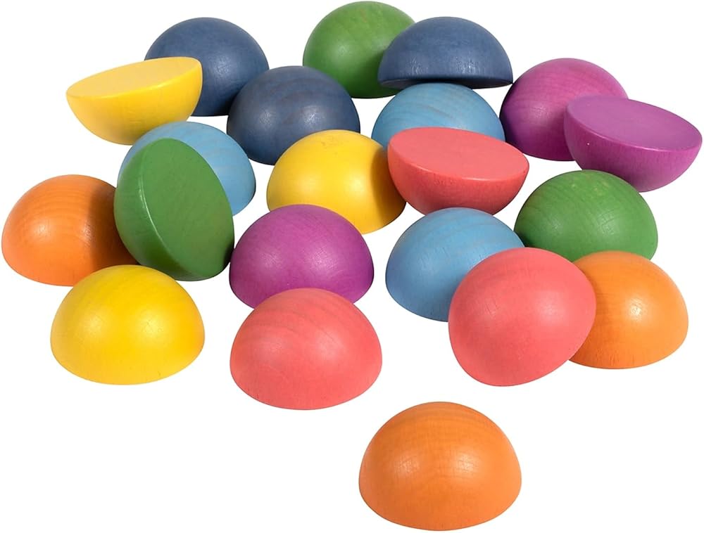 COLORFUL NATURAL PLAY -- These muted wooden semispheres are stained with lightly colored paint, which promotes calm and concentration. The water-based paint enhances the grain in the wood to complete the natural look
