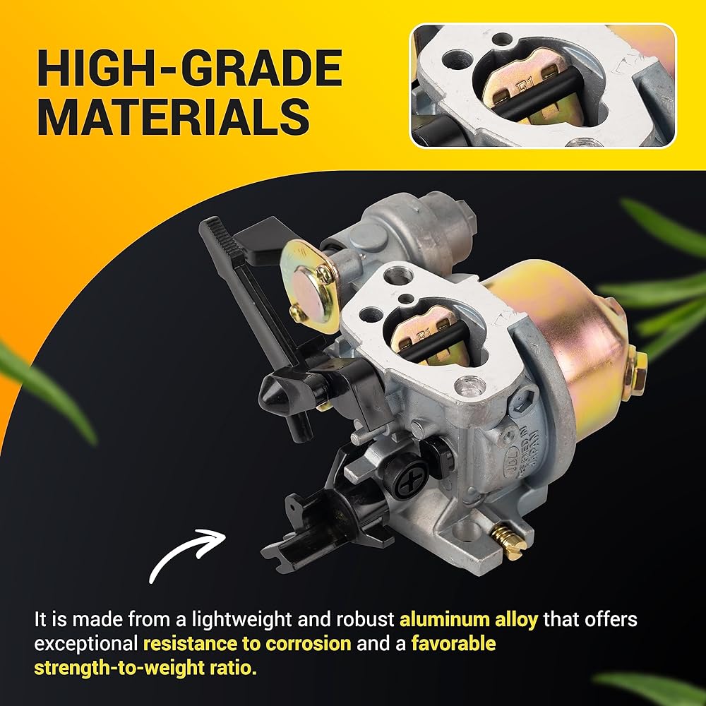 Canamax Carburetor for Honda GX160 GX200 is crafted from a lightweight and robust aluminum alloy that offers exceptional resistance to corrosion and a favorable strength-to-weight ratio. This material is a popular choice for constructing carburetors, allowing them to be both durable and effective in blending air and fuel for internal combustion engines