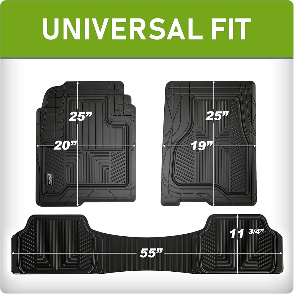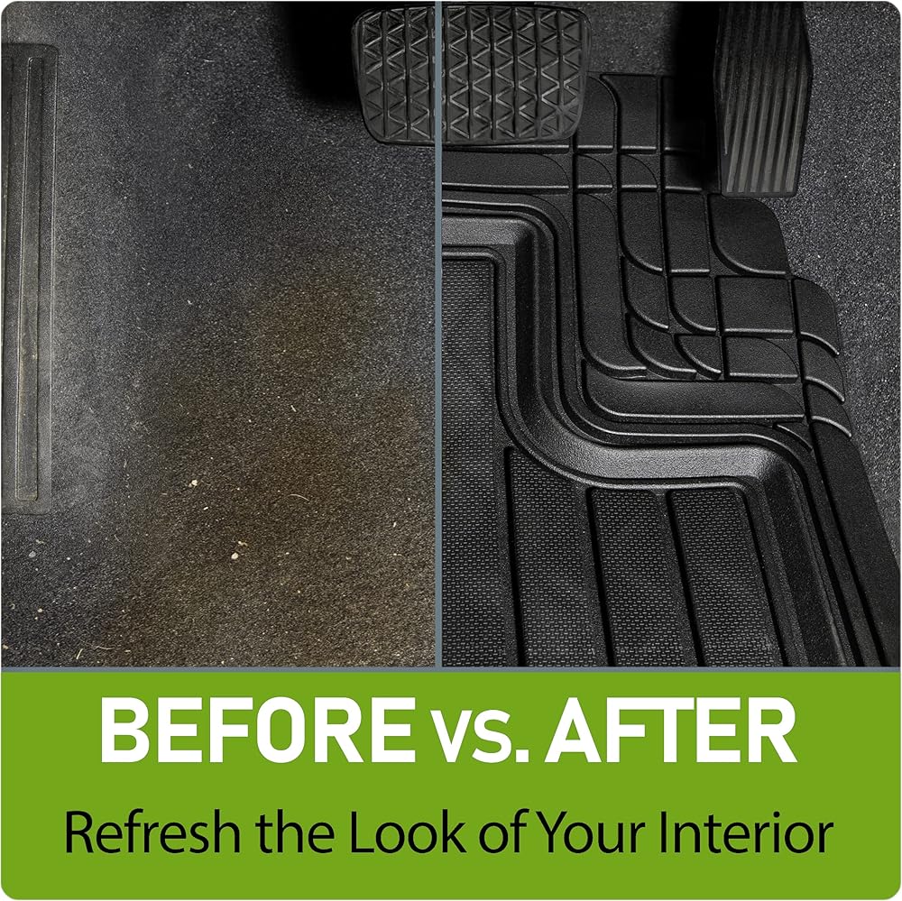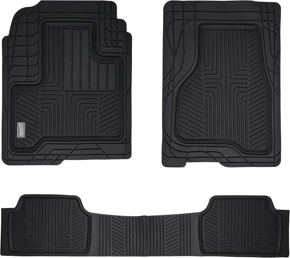 SCULPTED RUBBER CAR MATS: These mats are strategically molded to trap dirt, road salt, mud, and sand; grooved channels draw water and grime away from your feet