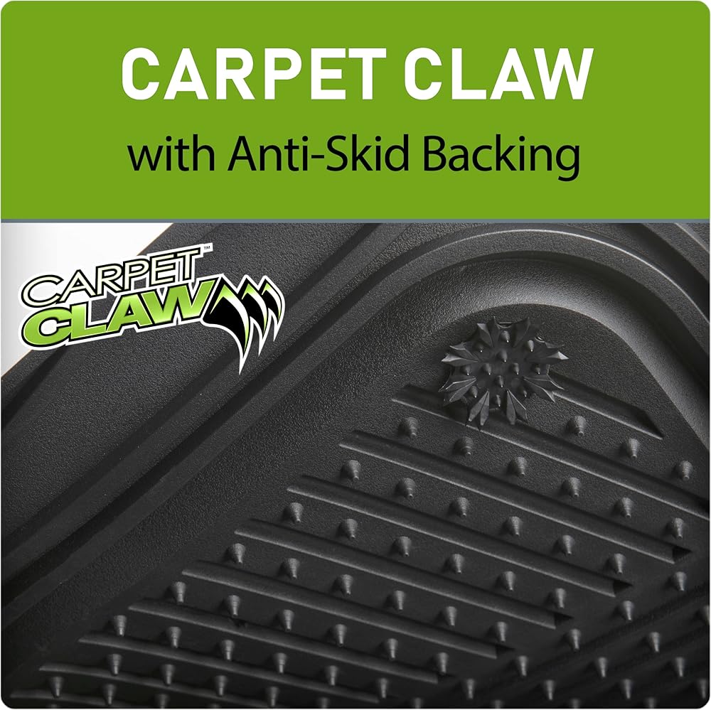 ANTI-SLIP SMART LINER: Better than ordinary rubberized nubs, our patented Carpet Claw anti-slip cleats grip your vehicle's carpet tightly to keep these floor mats from sliding or shifting during use