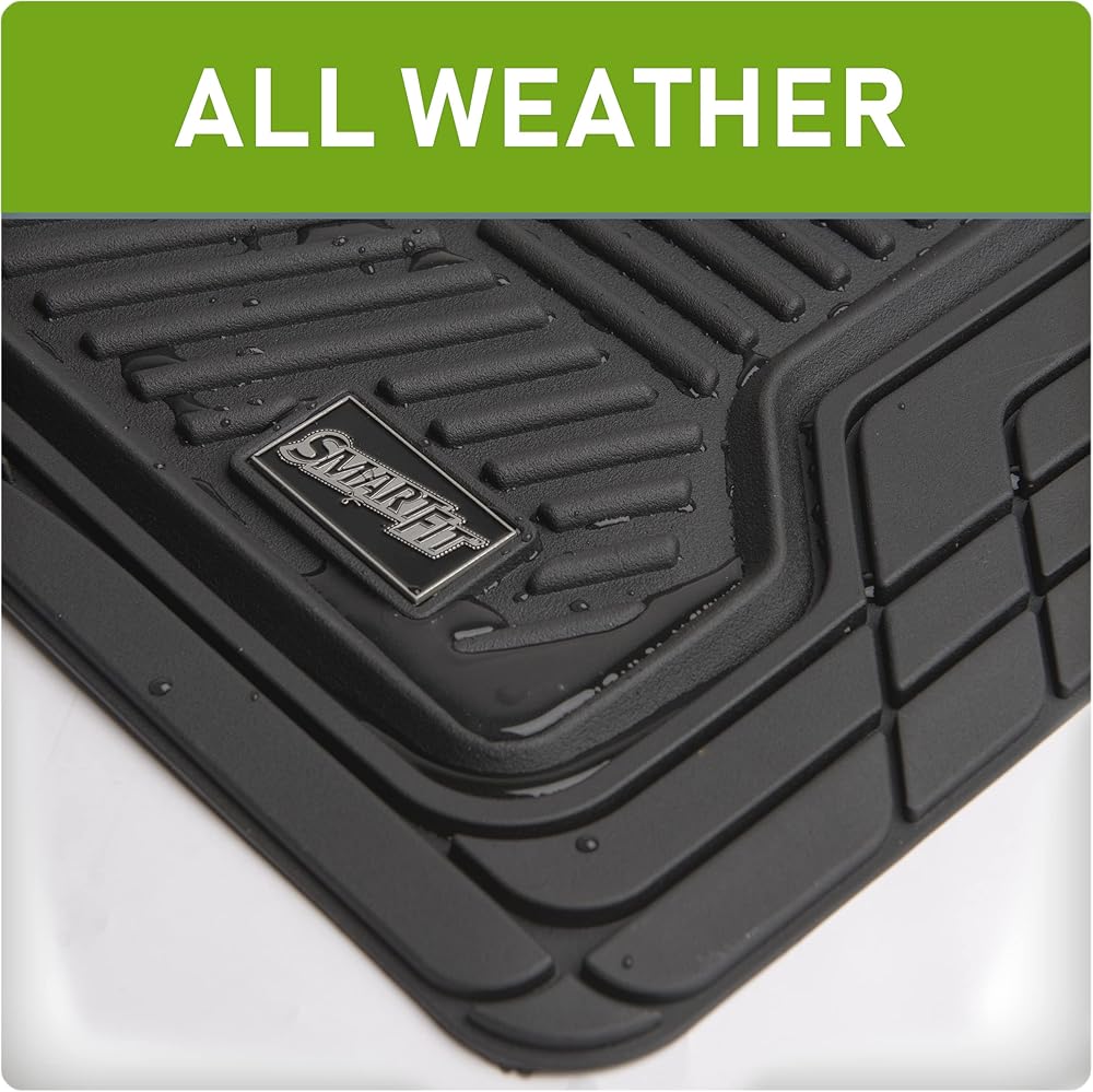 سجادات أرضية الشاحنات الثقيلة من SmartFit™ مكونة من 3 قطع مناسبة لجميع الأحوال الجوية - مقاس عالمي، مجموعة سجادات مطاطية مناسبة لجميع المواسم من الأمام والخلف - (أسود)