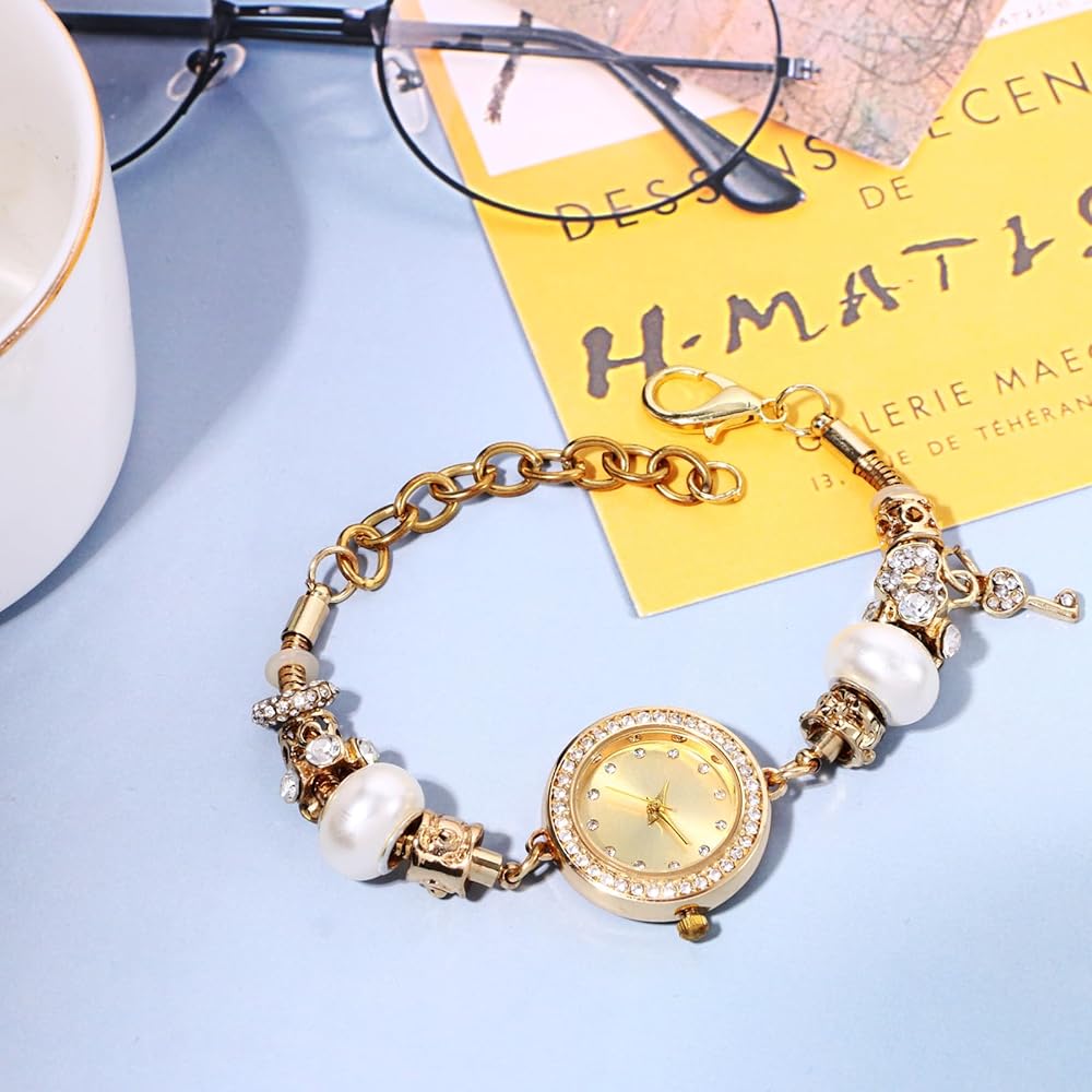 Avaner Women's Rhinestone Bracelet Watches: Gold Slim Strap Small Face Analog Quartz Elegant Dress Wrist Watches for Ladies Girls