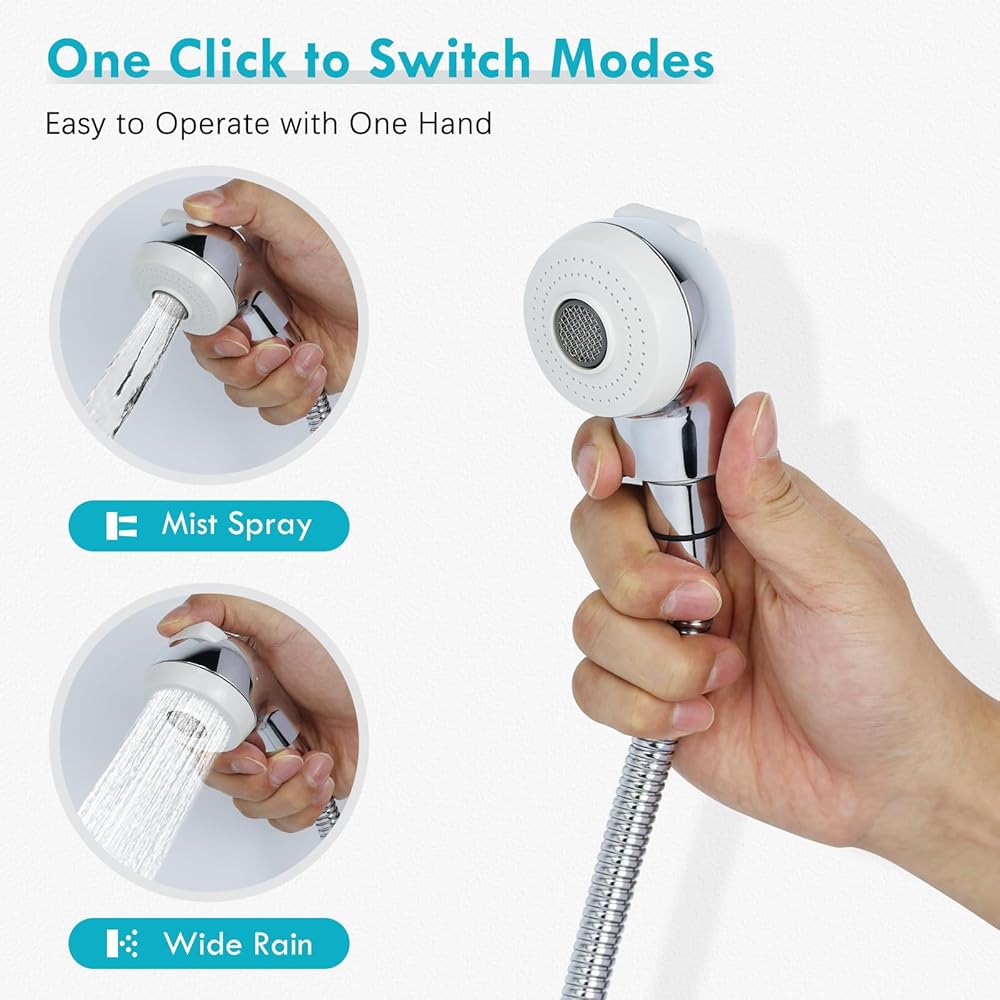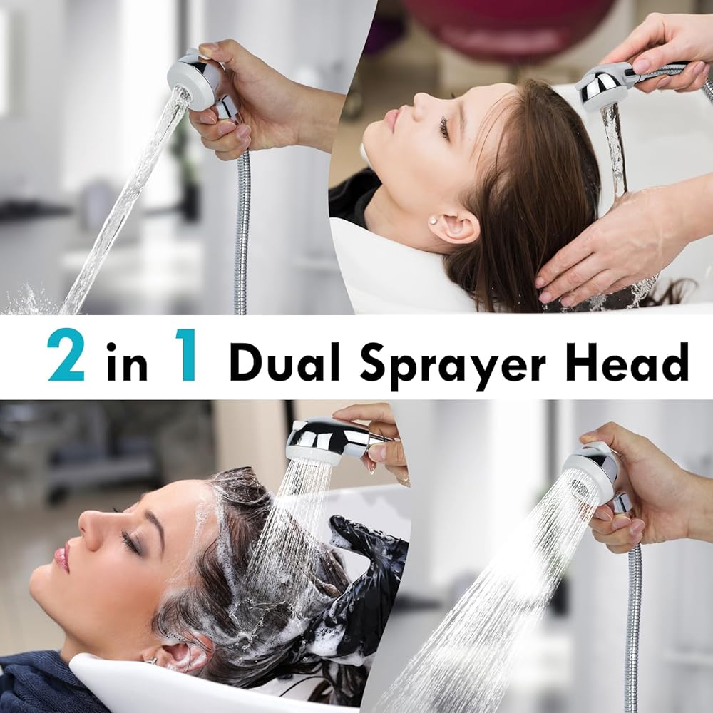 تصميم مزدوج الوظائف: رأس دش وعاء الشامبو المحمول مع نظام مفتاح علوي، مما يتيح سهولة التبديل بين رذاذ الماء الفقاعي وتدفق الماء المنتظم لغسل شعر أكثر راحة.