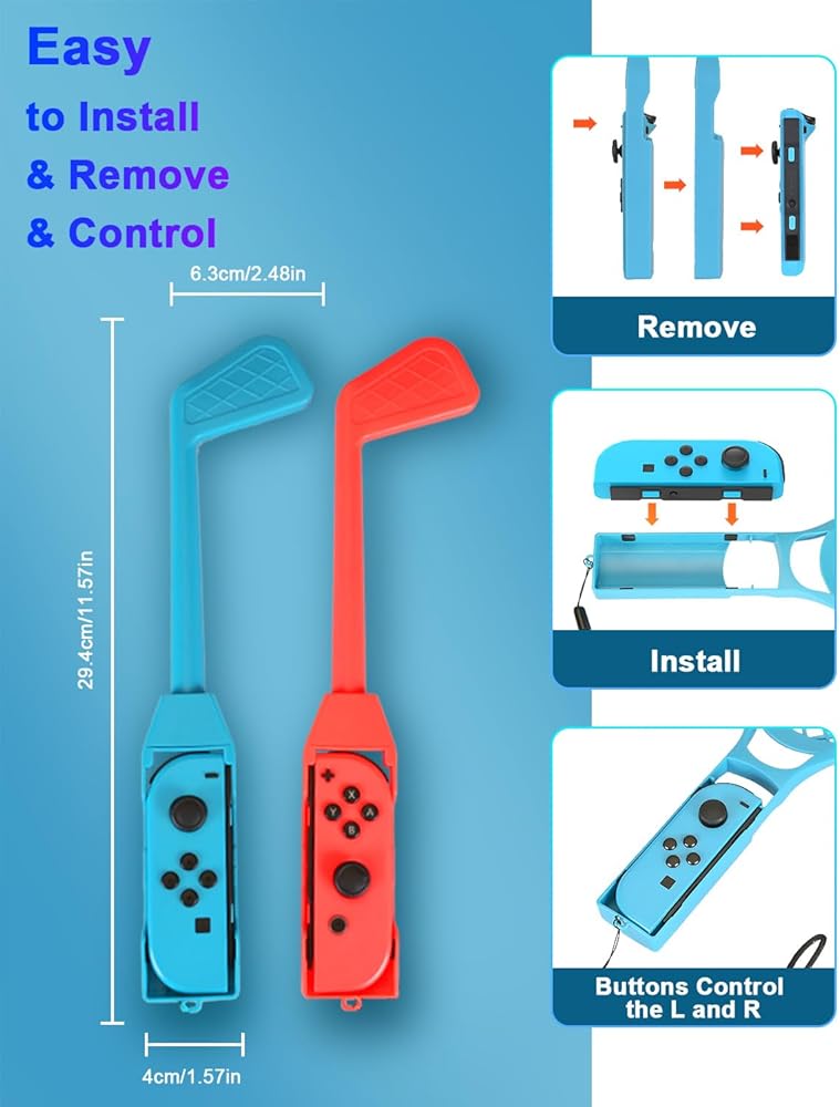• ⛳️ نوادي الجولف x2 وسيوف شامبارا x2 - تم تصميم مقابض السيوف الخاصة بنا خصيصًا لألعاب Nintendo Switch Sports: Chambara (Swordplay). مناسب تمامًا لـ Switch/Switch OLED Joy-con. بدلاً من مجرد استخدام Joypad، يمكن لنوادي الجولف أن تنقل تجربة لعبة المحاكاة إلى مستوى جديد تمامًا، مصنوعة من مادة بلاستيك ABS المتينة، وخفيفة الوزن، ومريحة في الإمساك، مما يمنحك إحساسًا بتجربة لعبة المحاكاة!